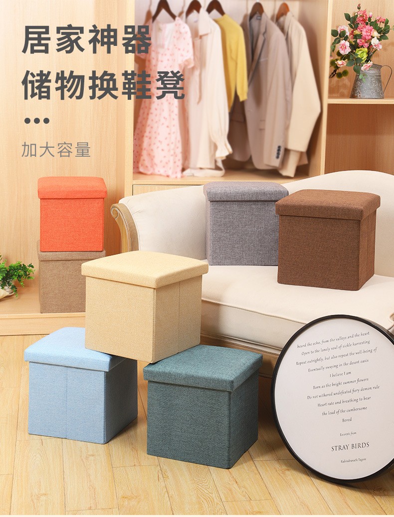 生地折りたたみ収納スツール家庭用収納スツール座って靴交換スツール家庭用大容量拡張スツールソファスツール