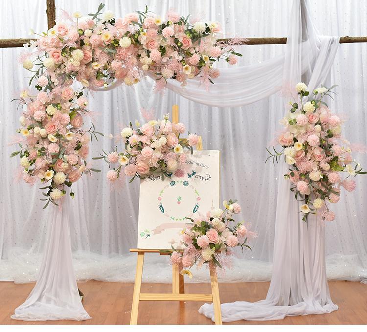 爆款粉色仿真花迎宾订婚宴背景求婚花排布置婚礼舞台装饰花艺