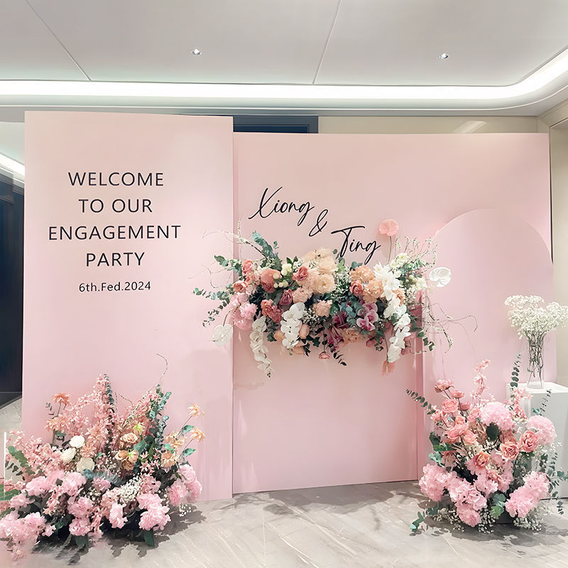 订婚宴布置装饰2024韩系粉色简约高级全套女方家里氛围背景墙kt板