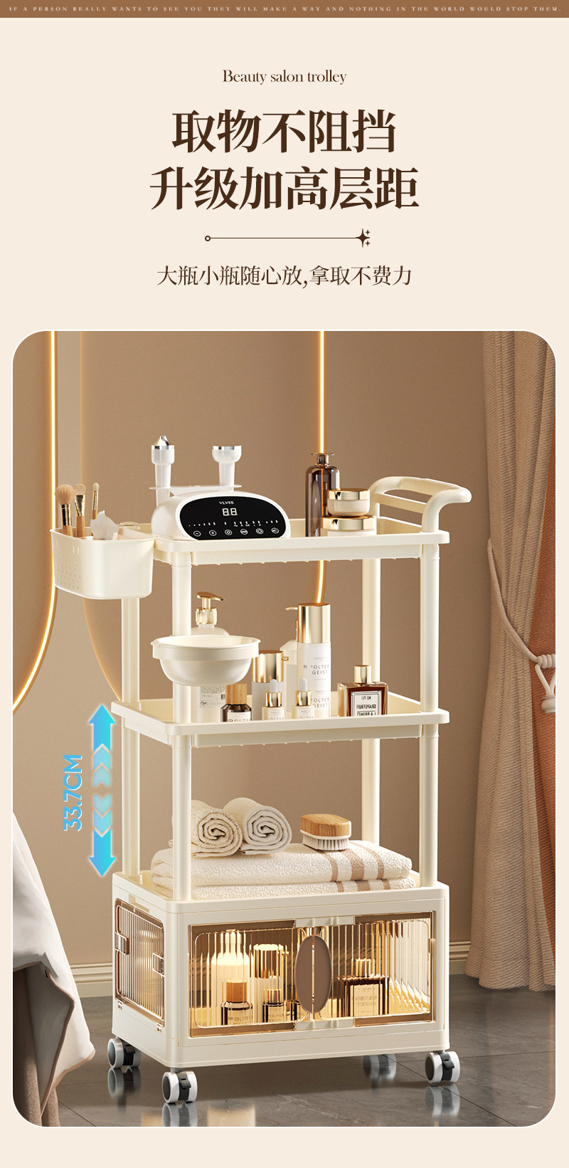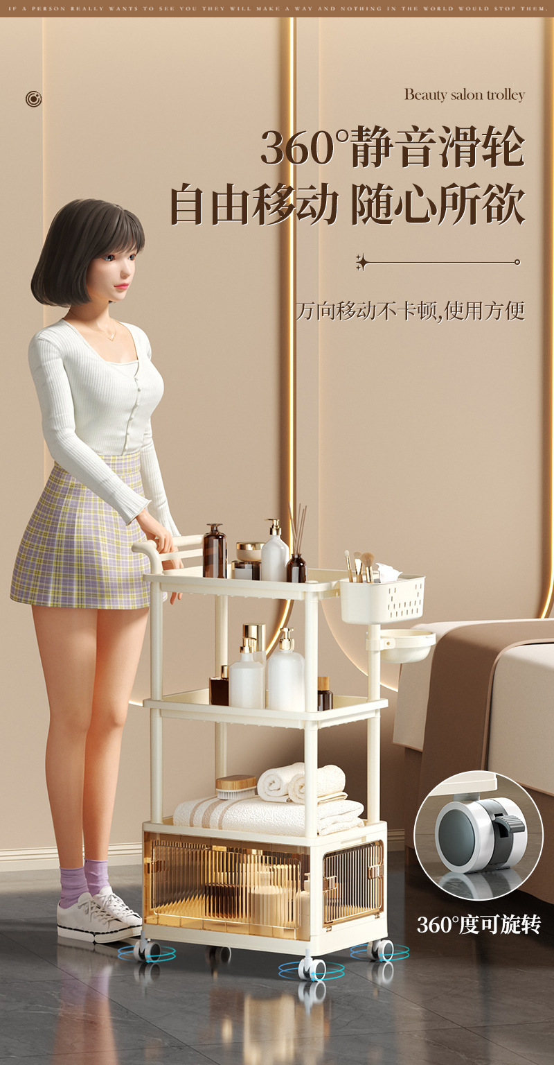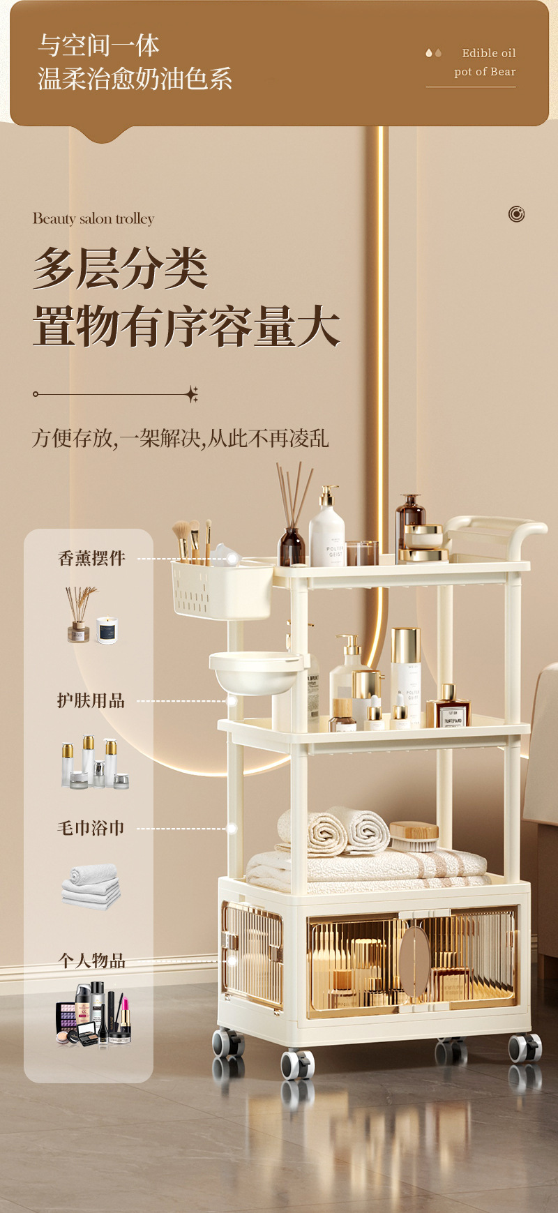 美容院専用高颜値スキンケア機器収納棚多機能大容量高静音プーリーカート