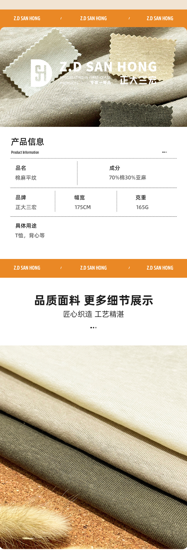 高品質1号40本亜麻綿平織り生地190gライセル亜麻綿生地夏tシャツ生地
