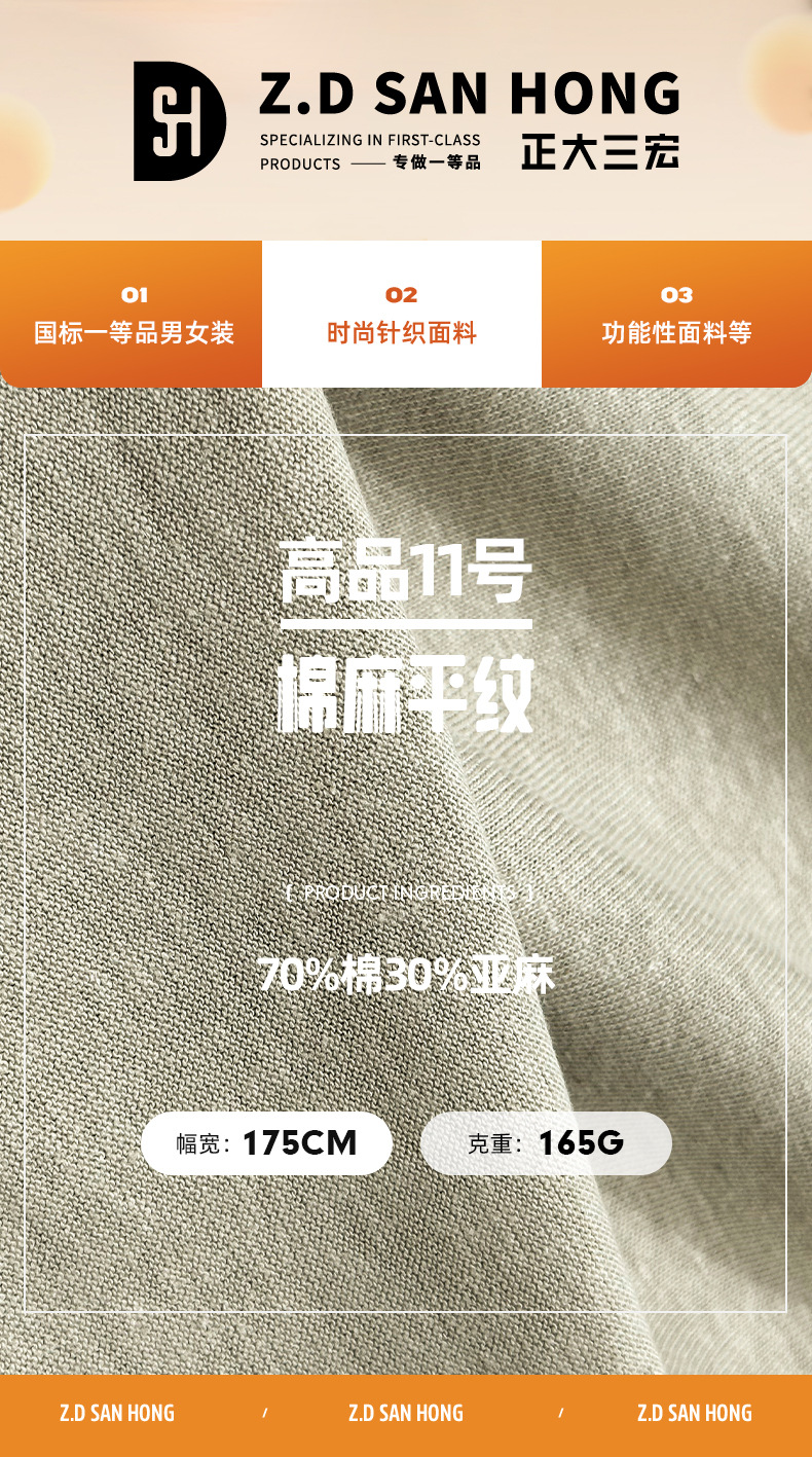 高品質No.11 165g綿麻平織りジャージーニットリネンコットン生地 吸湿性と通気性に優れたリネンコットンTシャツ生地