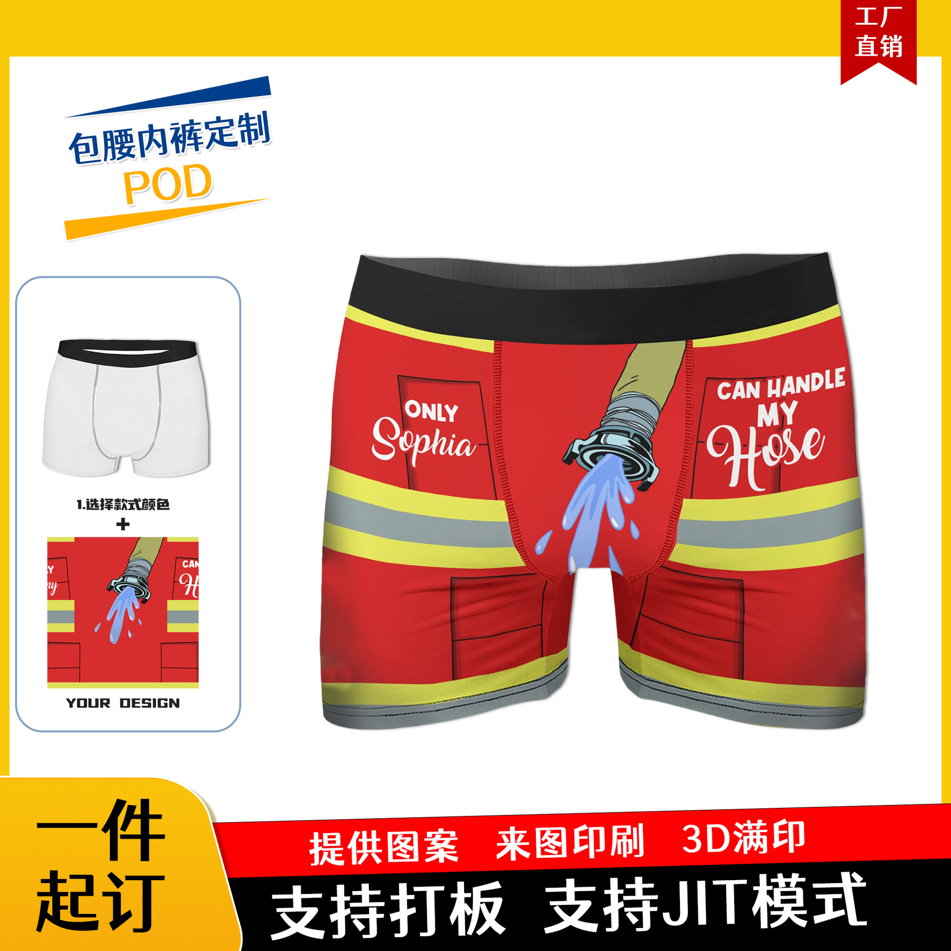 跨境POD平角内裤定制 包腰内裤男士3d数码印花无痕四角裤一件定制