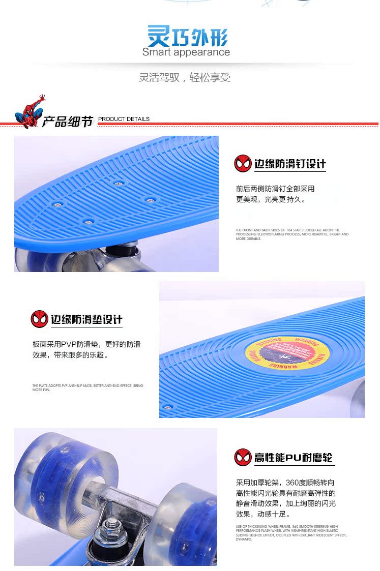 我厂专业生产、开发全铝合金普通滑板车的厂家,品种有二轮、二轮背带、三轮、三轮背带等几个品种;专用PU、PU激光轮(带兰色、红色、黄色灯光);铝体有光亮、红色、兰色、紫色、黄色五种供选择;采用无焊接技术,每个零件都经过量身定做,使之更符合车子的运动规律、延长使用时间;车身能够载70KG的重量,因此能够迎合大人和小孩,是一种不可多得的运动、休闲用品。