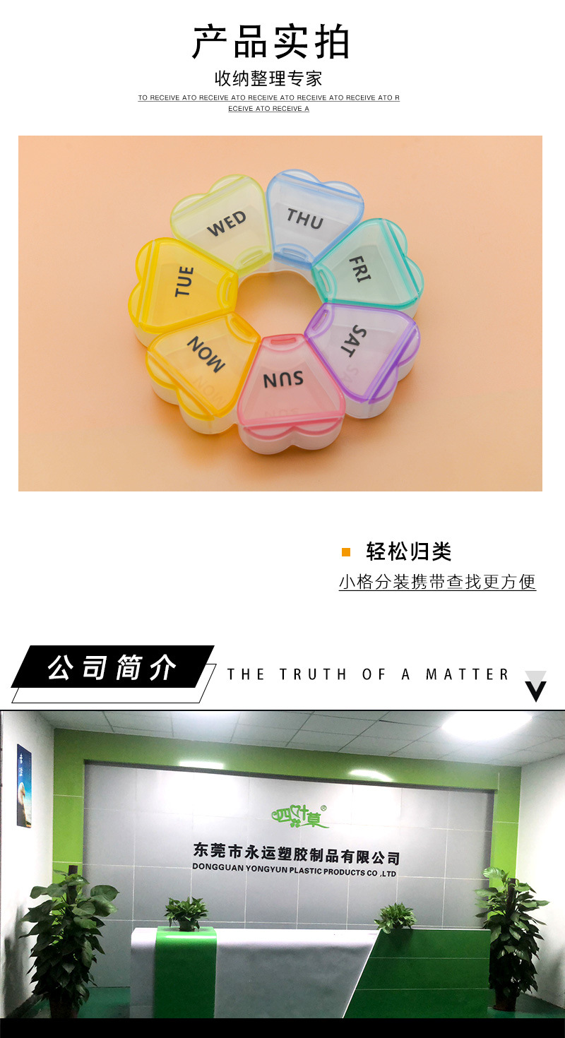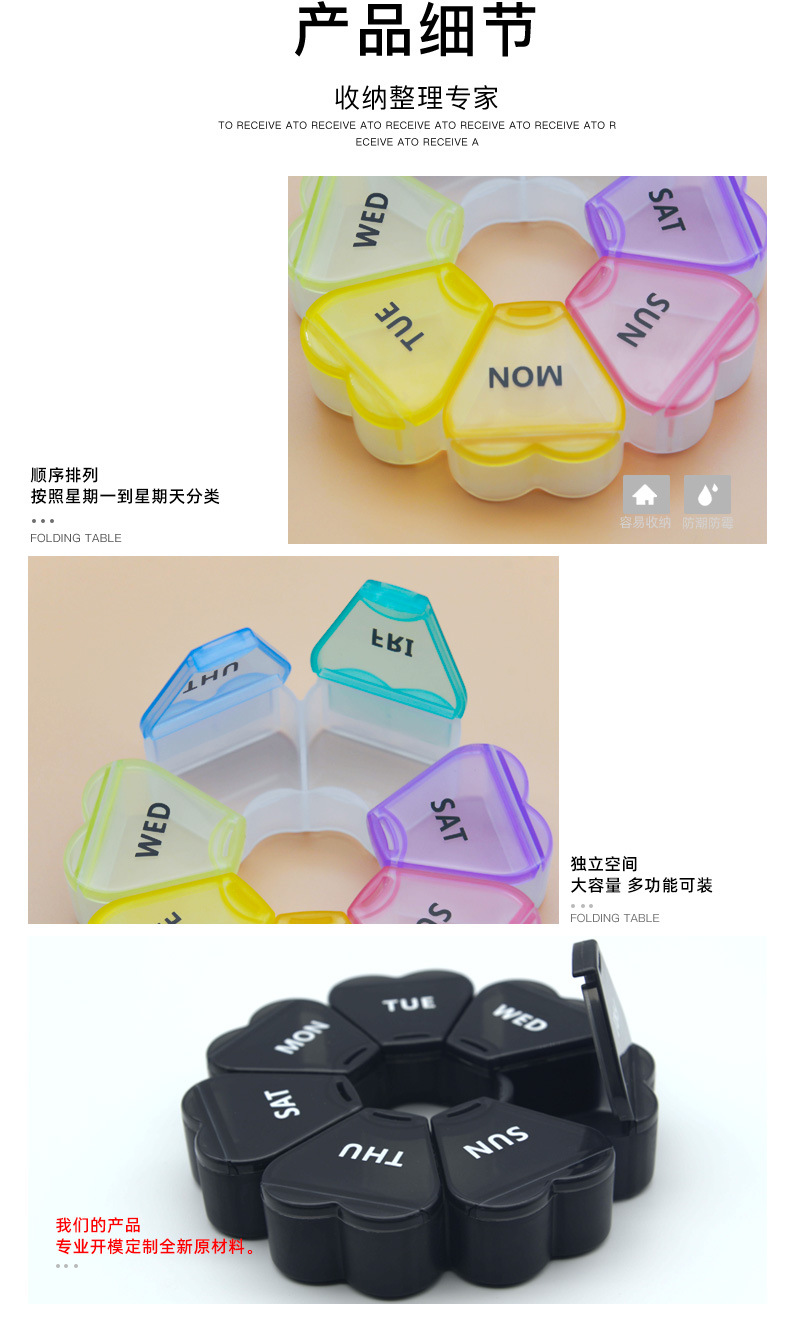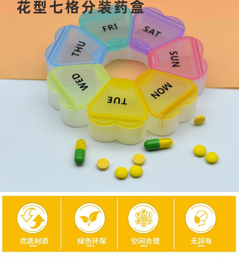 家庭用7区画携帯花びら型薬箱プラスチック製収納小薬箱蓋付き薬剤分包箱密封収納ボックス