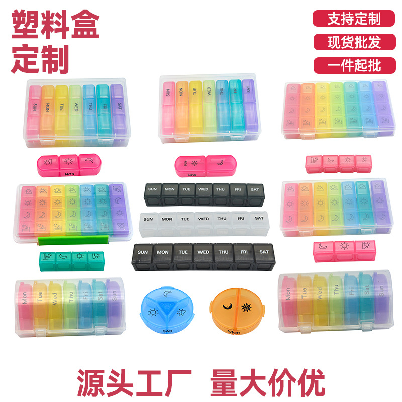 国境を越えたカラー7日間の薬箱携帯1週間7格旅行分離保健錠剤カプセル収納箱