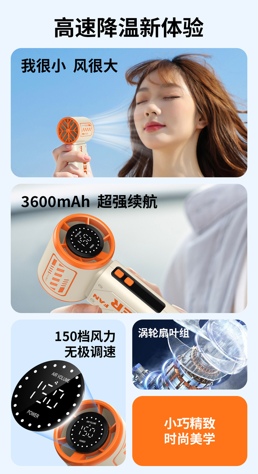 国境を越えた新しいハンドヘルド小型ファン USB 充電式ファン小型屋外強風高速ハンドヘルド ターボ ファン