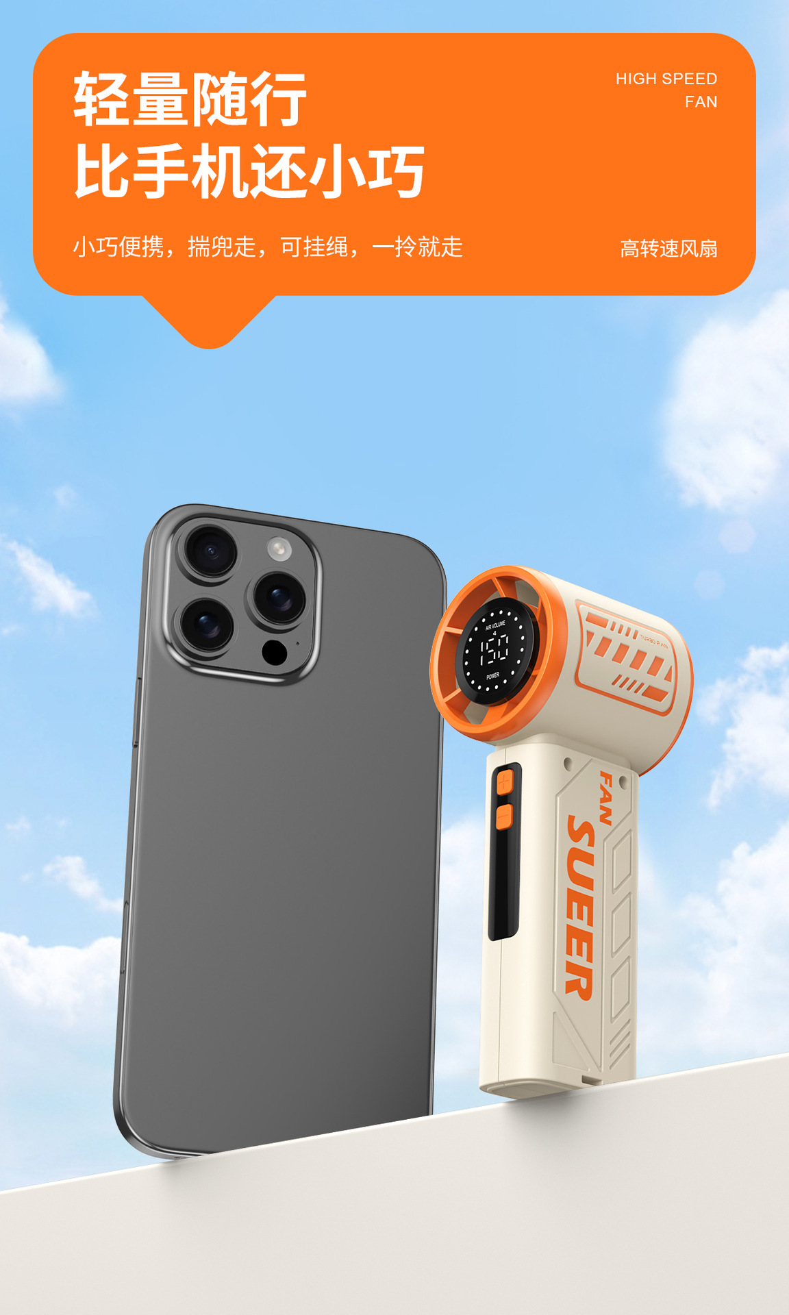 新款迷你手持199档小风扇大风力户外便携式跨境高速口袋风扇爆款