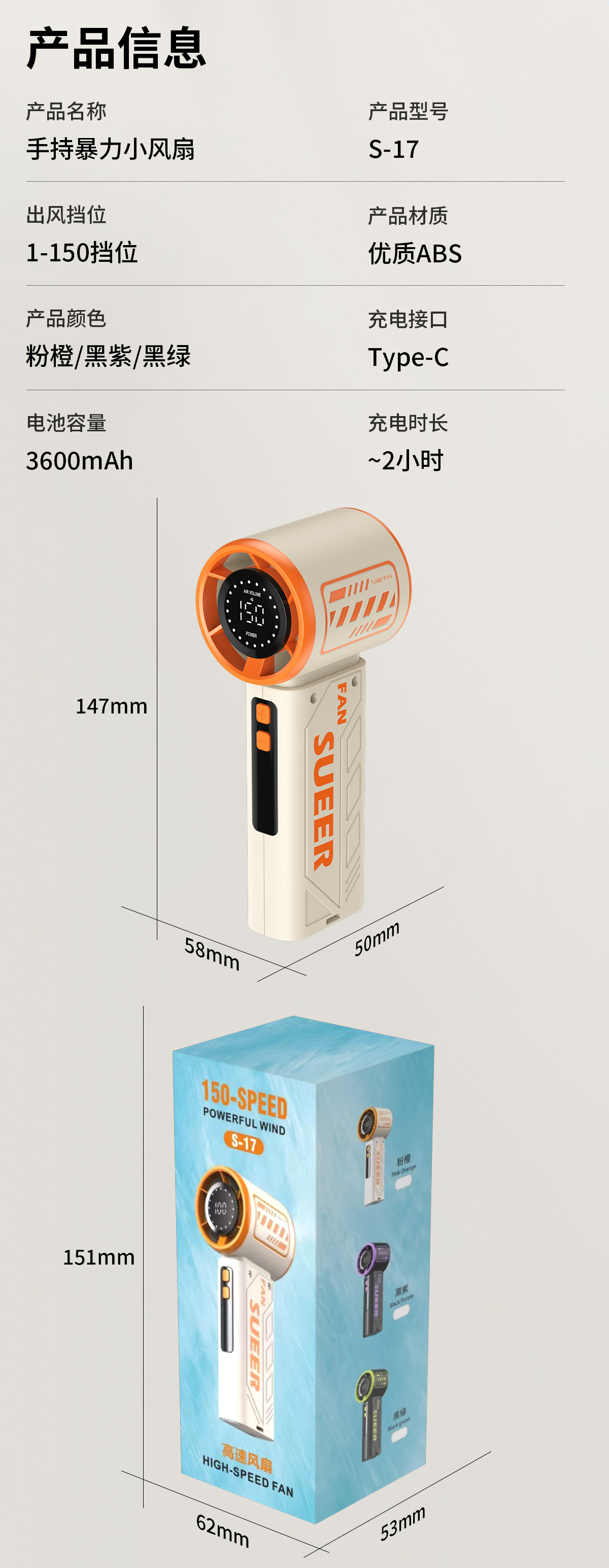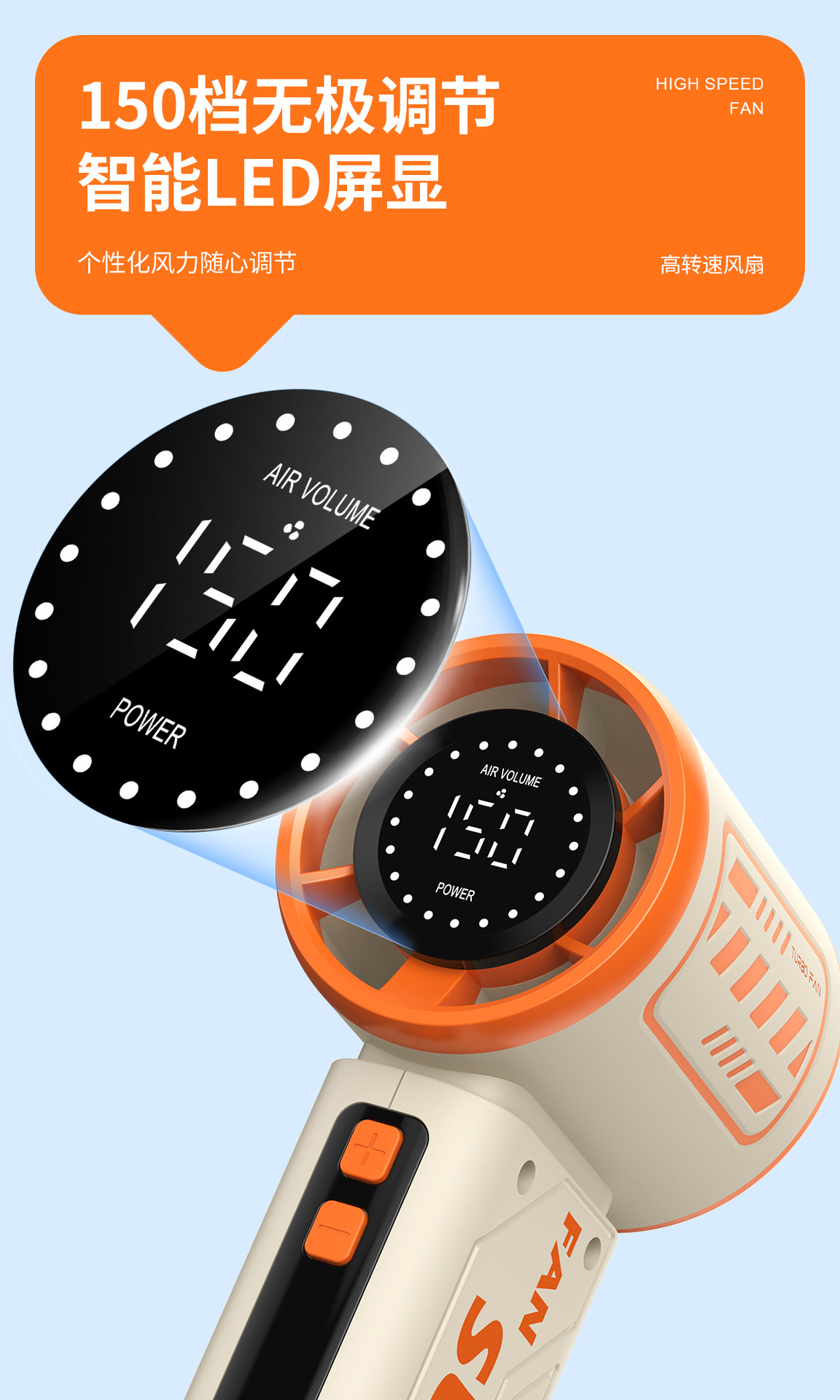 新款100档手持高速风扇 机甲户外便携风扇无级调速涡轮暴力可充电