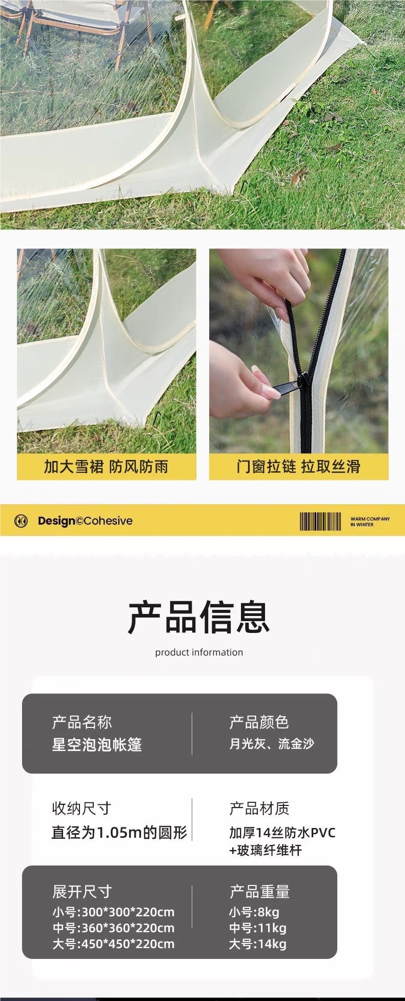 星空テントネット赤泡屋球形透明テント星空室屋外冬防風保温モンゴルバッグなし