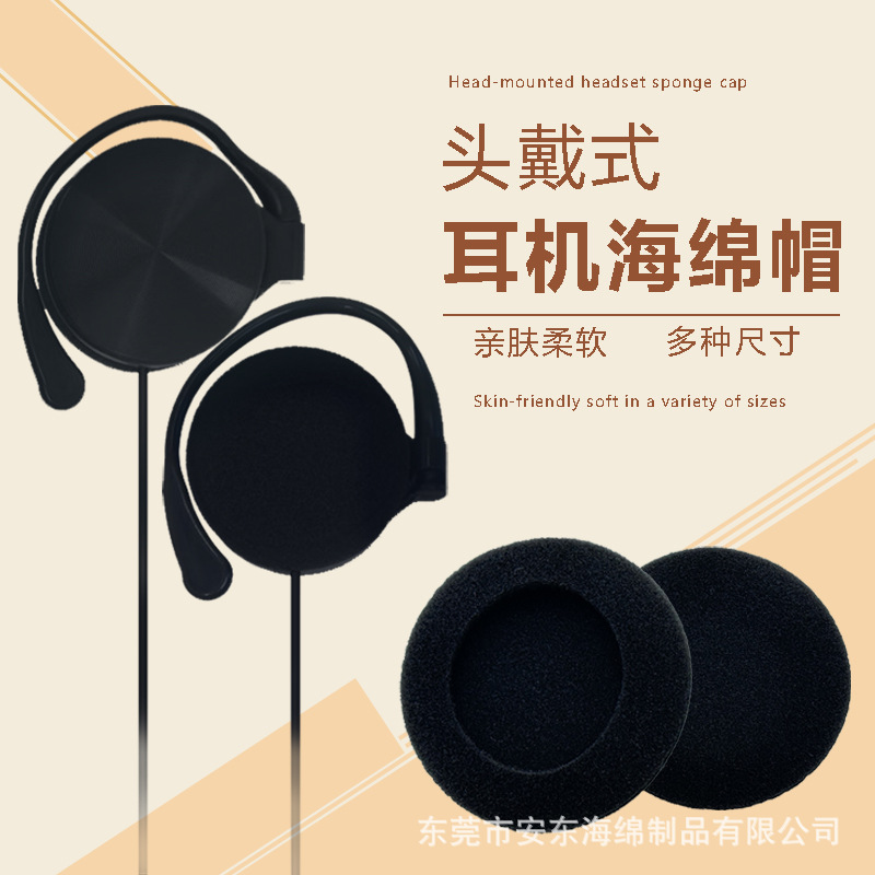 ラウンドヘッドフォンスポンジカバー黒カバーヘッドセットスポンジカバー