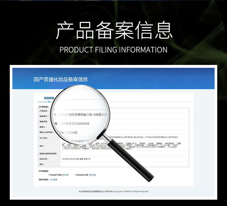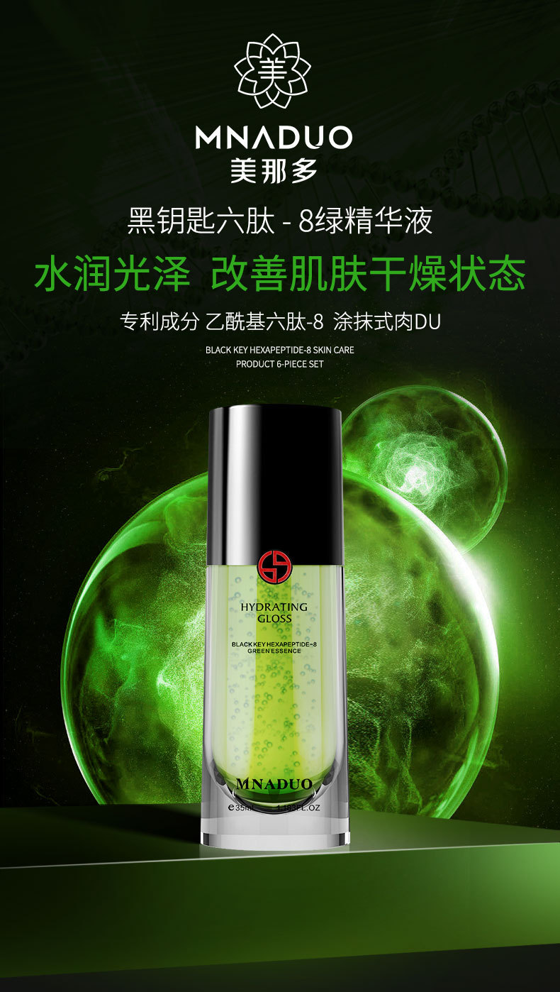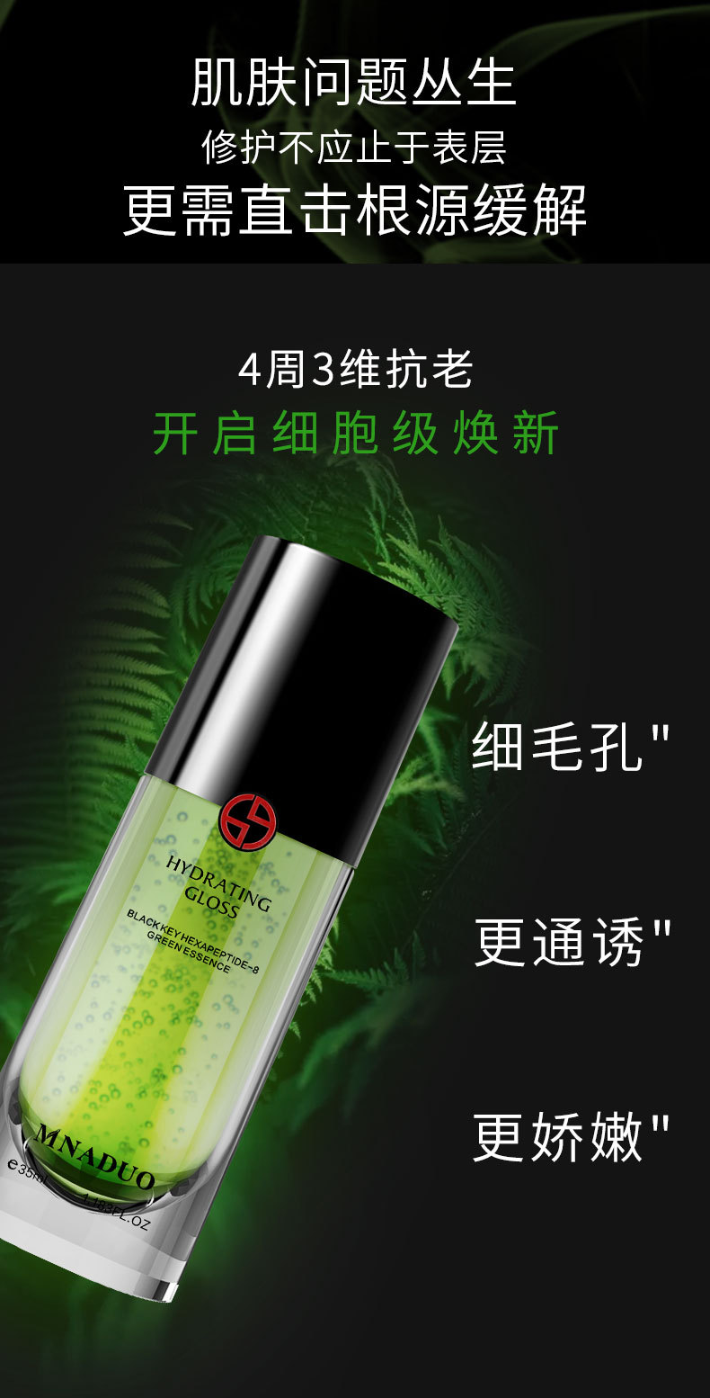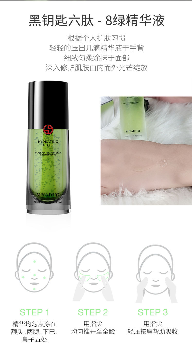 MNADUO ブラック キー 6 ペプチド グリーン エッセンス 水分補給、保湿、美白、弾力性の向上、肌の修復とケア エッセンス