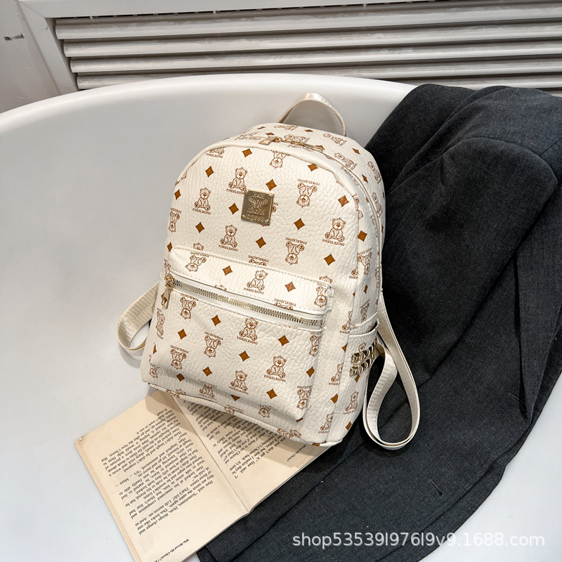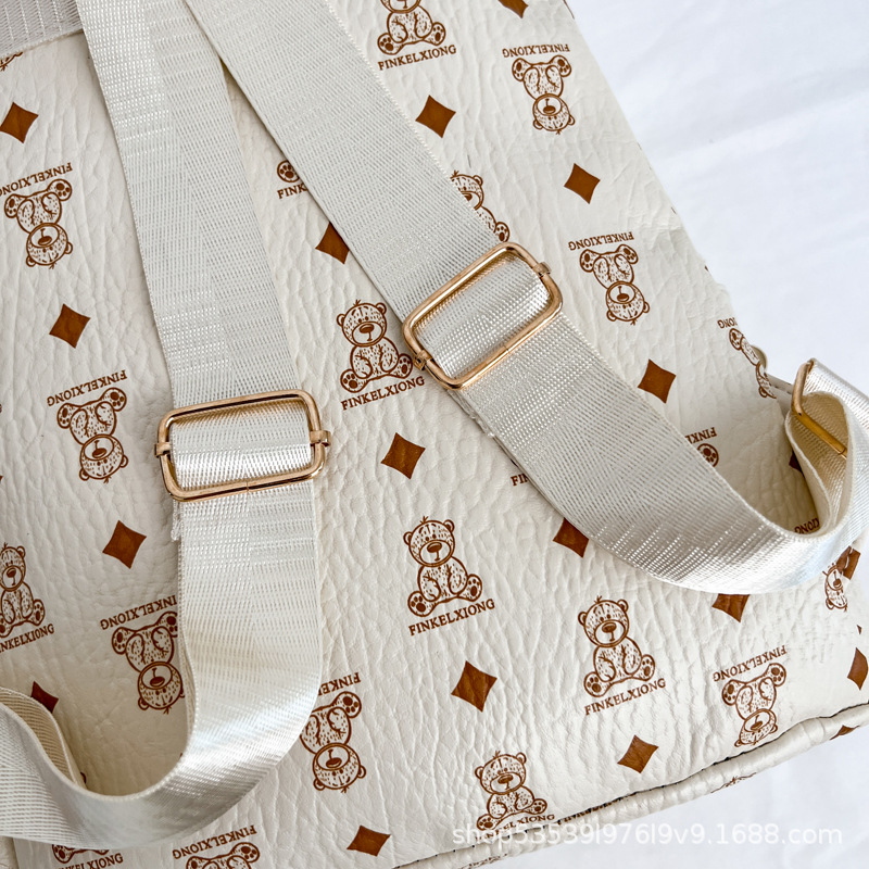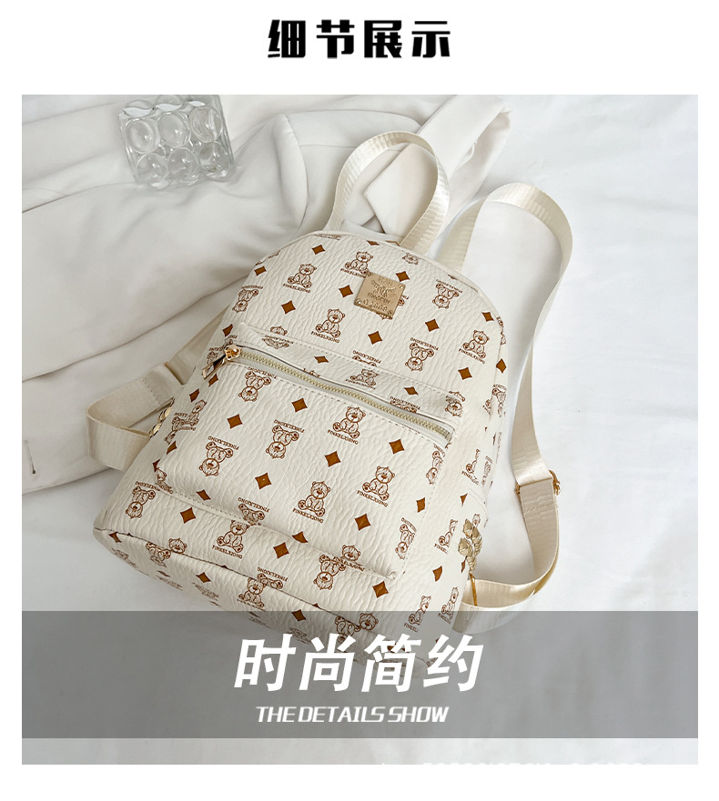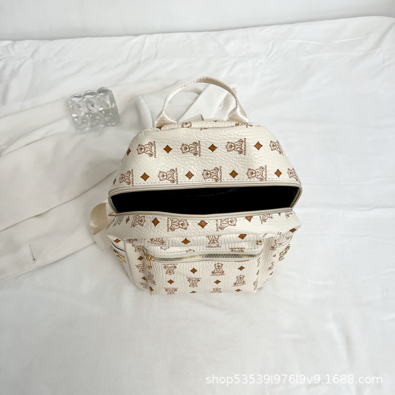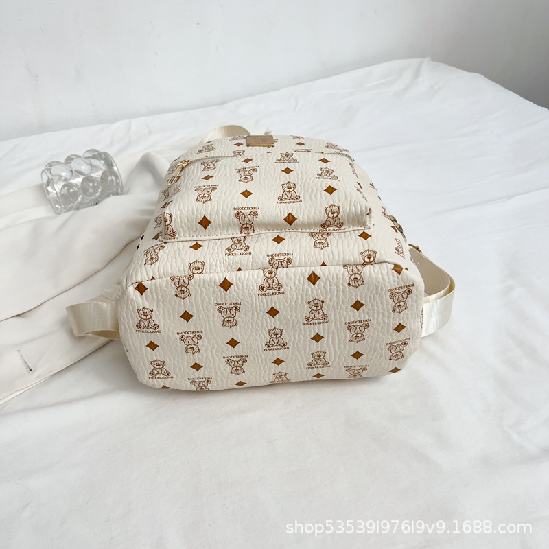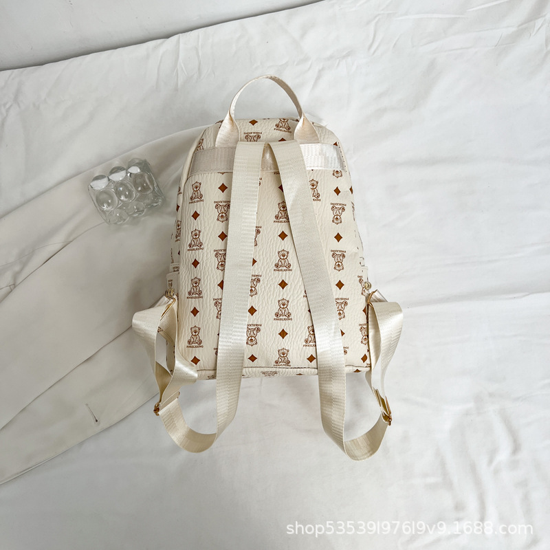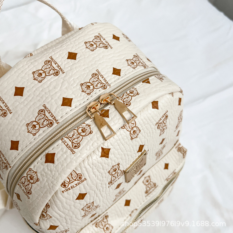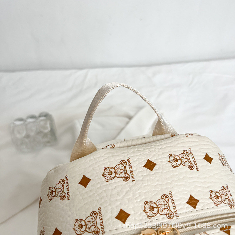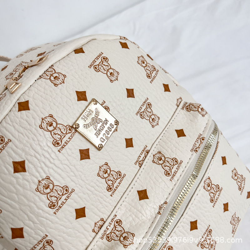 2025新款跨境女包出行时尚复古小熊印花双肩背包大容量百搭学生包
