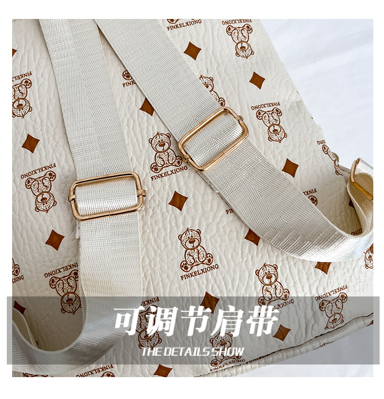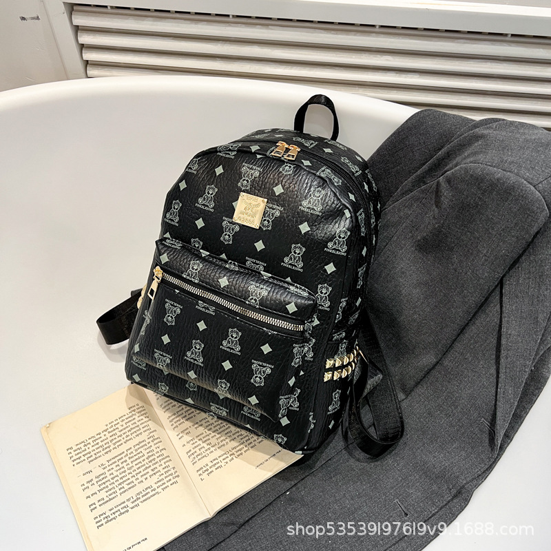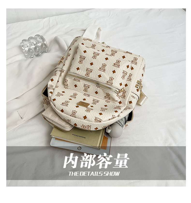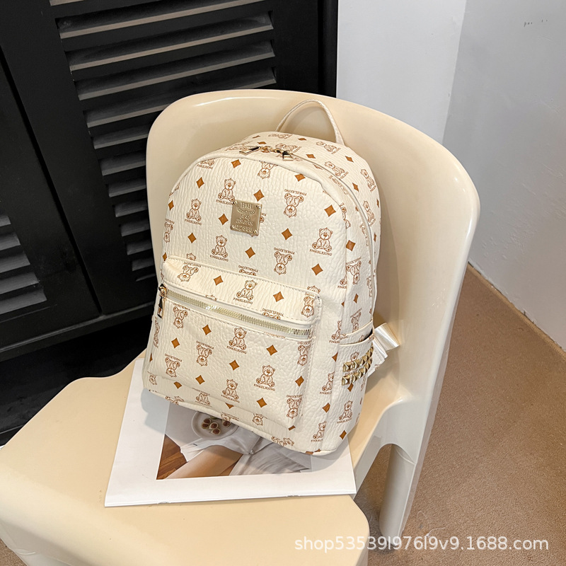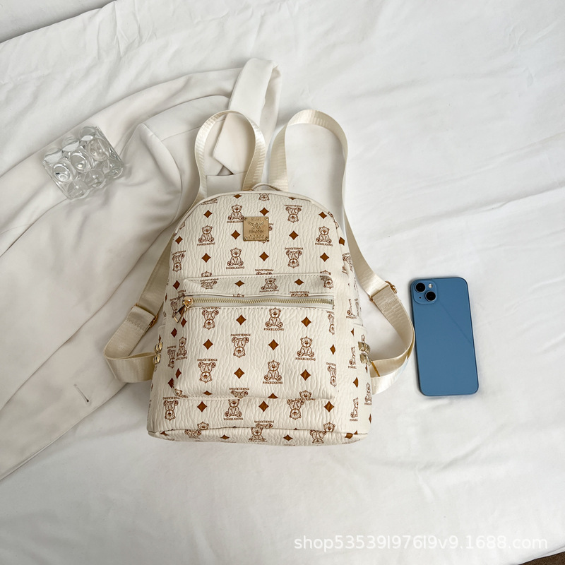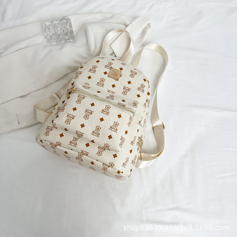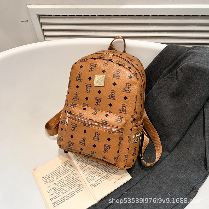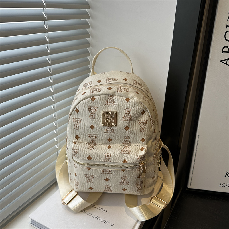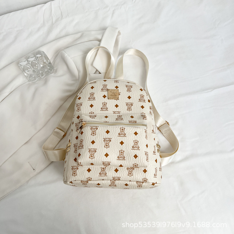 2025新款跨境女包出行时尚复古小熊印花双肩背包大容量百搭学生包