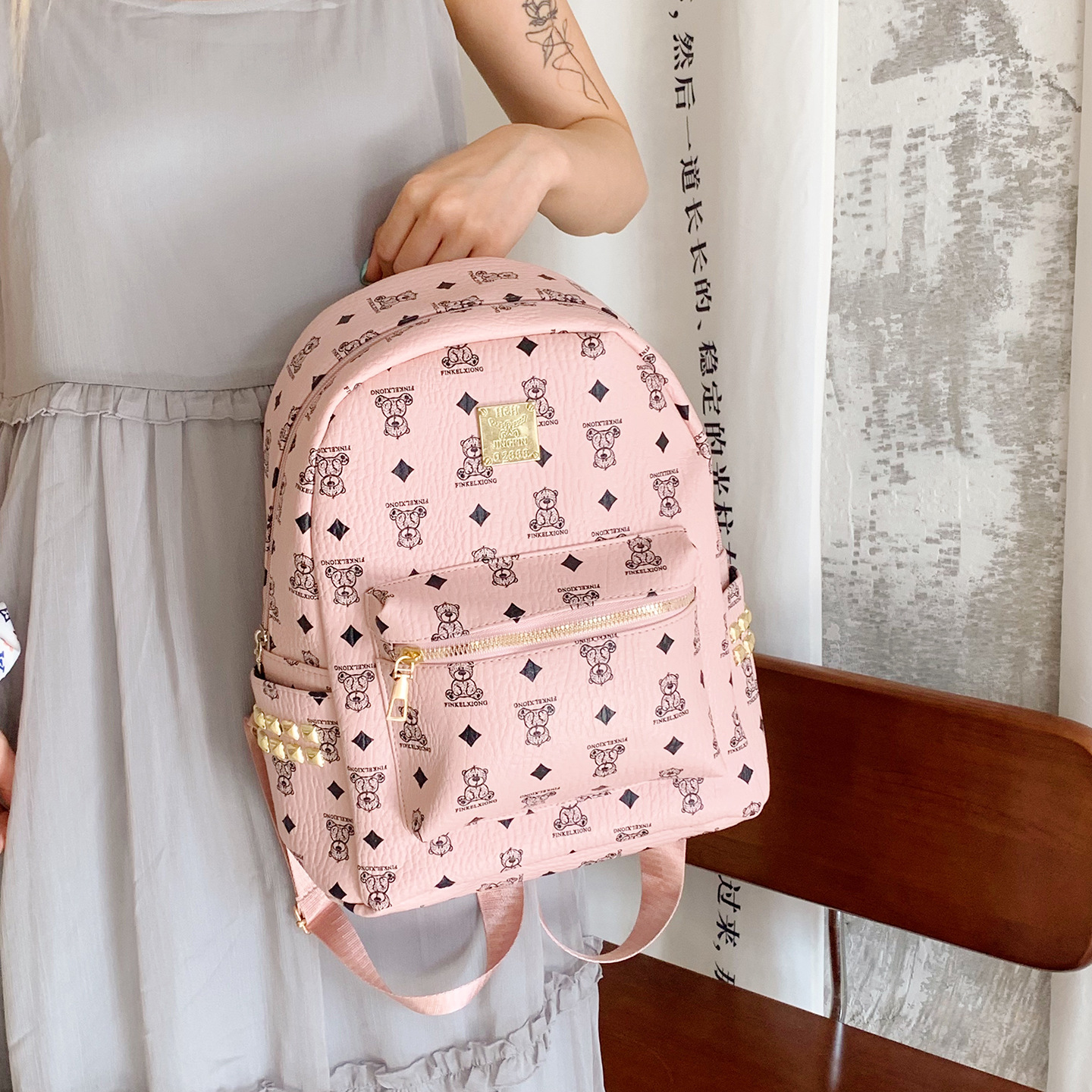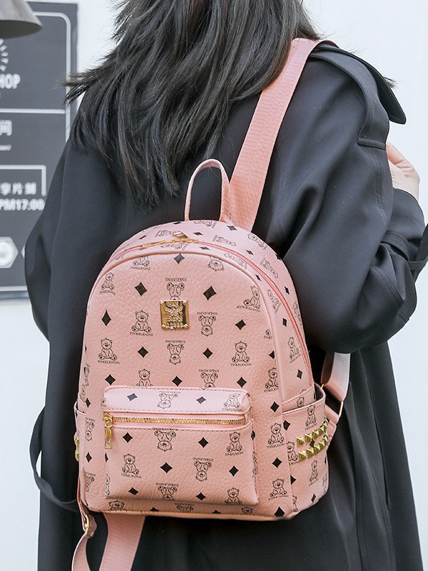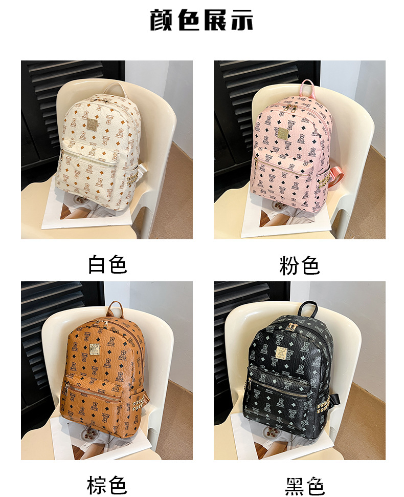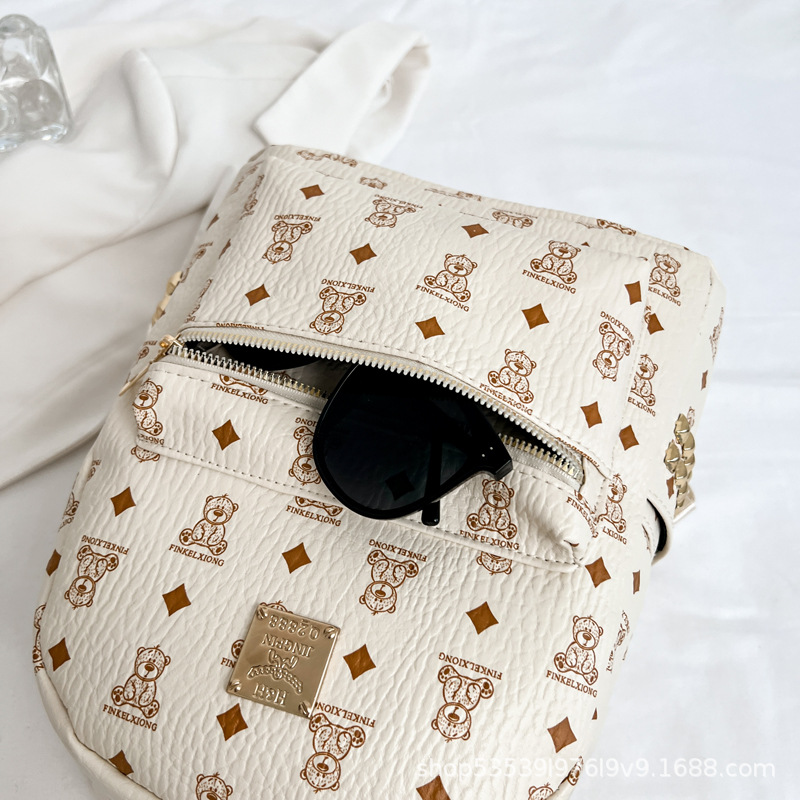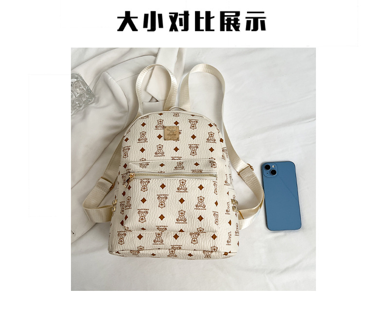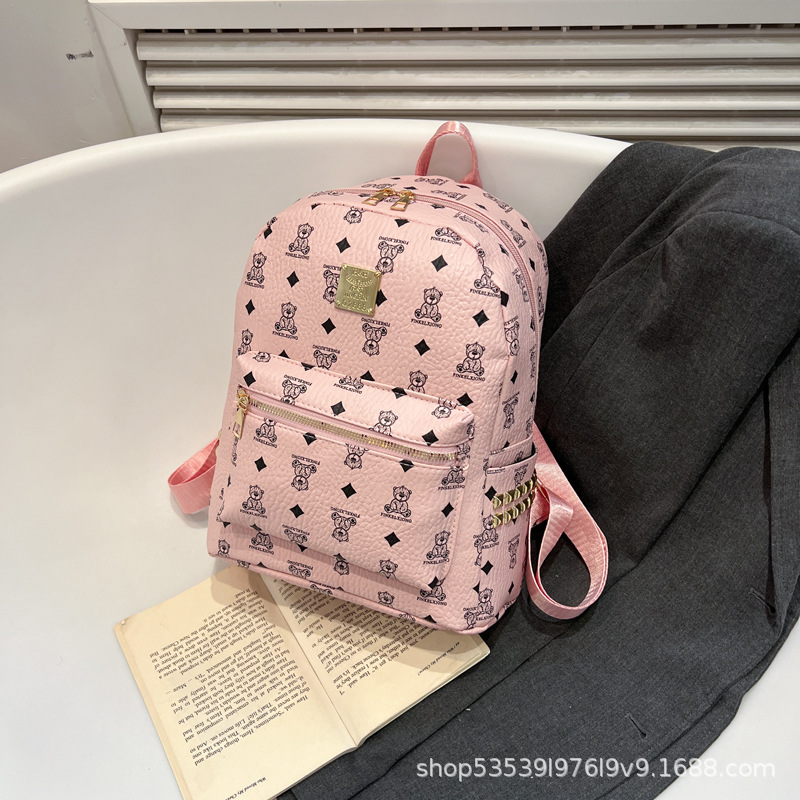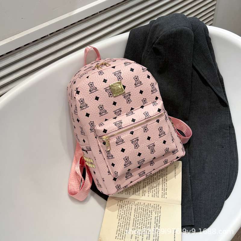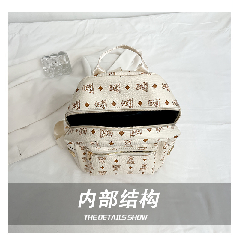 2025新款跨境女包出行时尚复古小熊印花双肩背包大容量百搭学生包