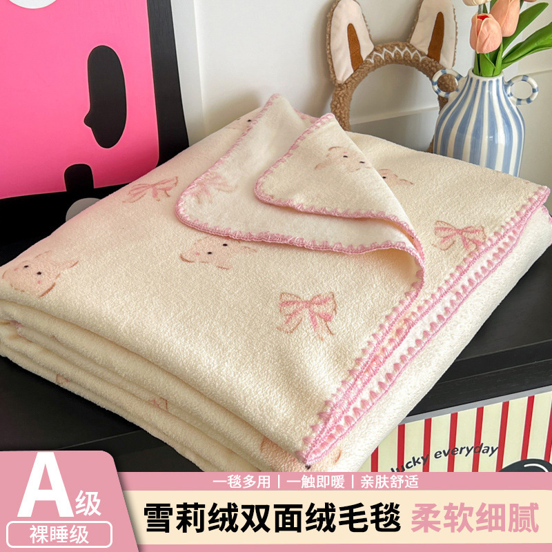 2025新款冬季毛毯雪莉绒贝壳绣双面绒毯子披肩毯多功能午睡毯毛毯