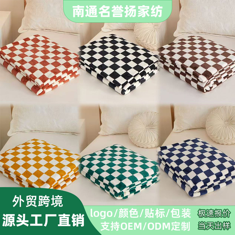 厂家批发棋盘格办公室盖毯空调毯礼品毯格子盖毯保暖毯法兰绒毛毯