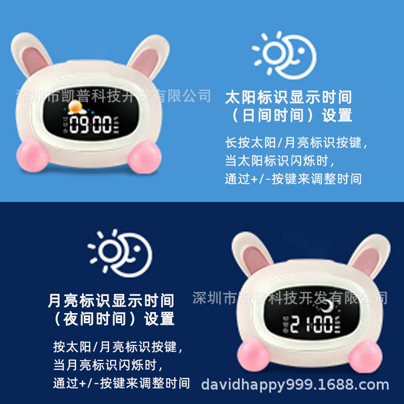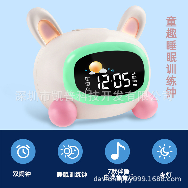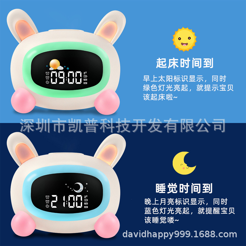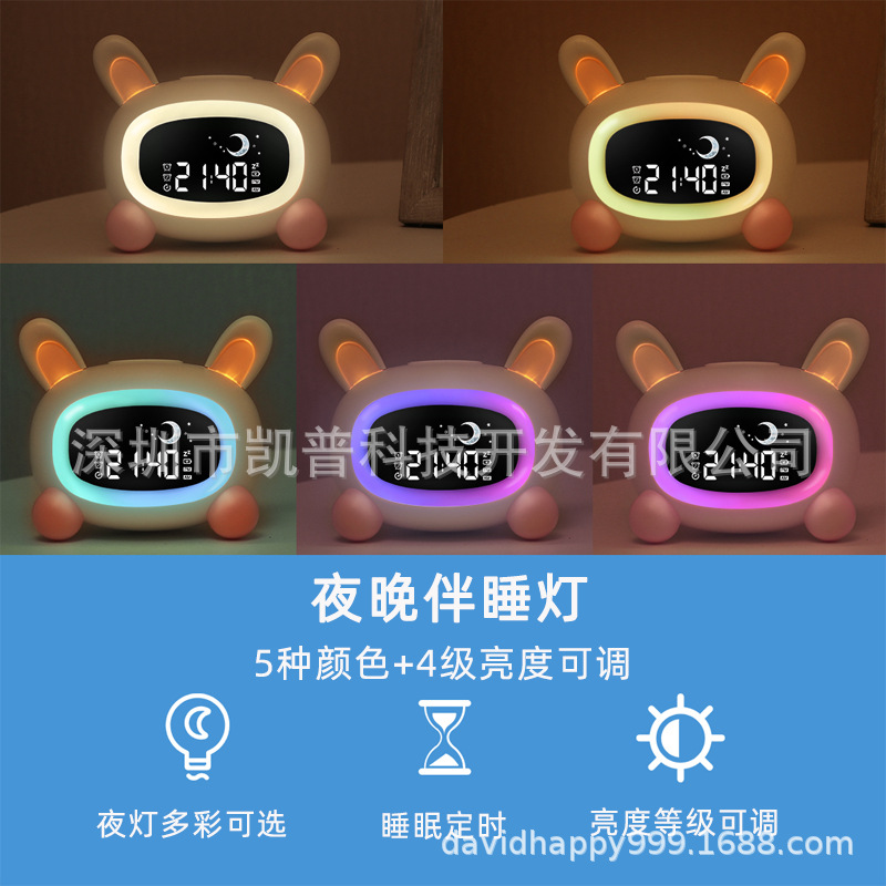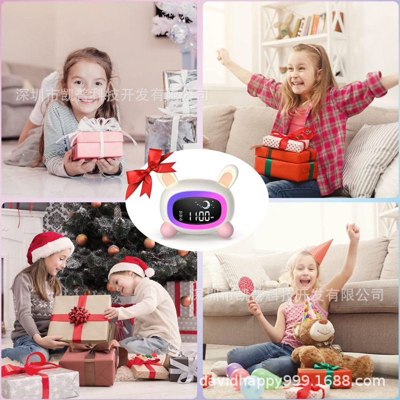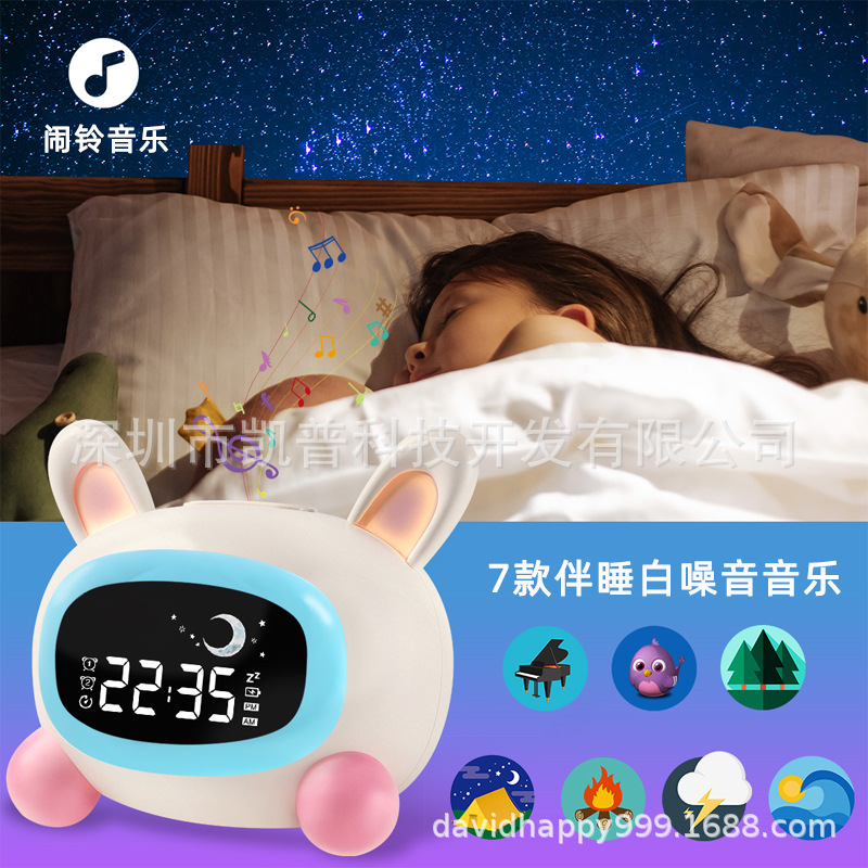 漫画ウサギの睡眠トレーニング時計、子供向けの楽しいカラフルなナイトライト、ホワイトノイズ睡眠時計、朝の目覚まし時計、子供用目覚まし時計