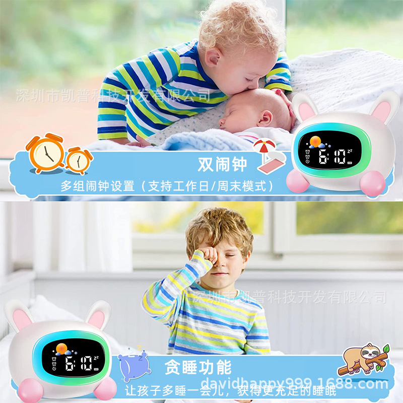 漫画子供のような睡眠トレーニング時計温度表示デュアルアラーム目覚まし時計カウントダウン時計ナイトライト目覚まし時計
