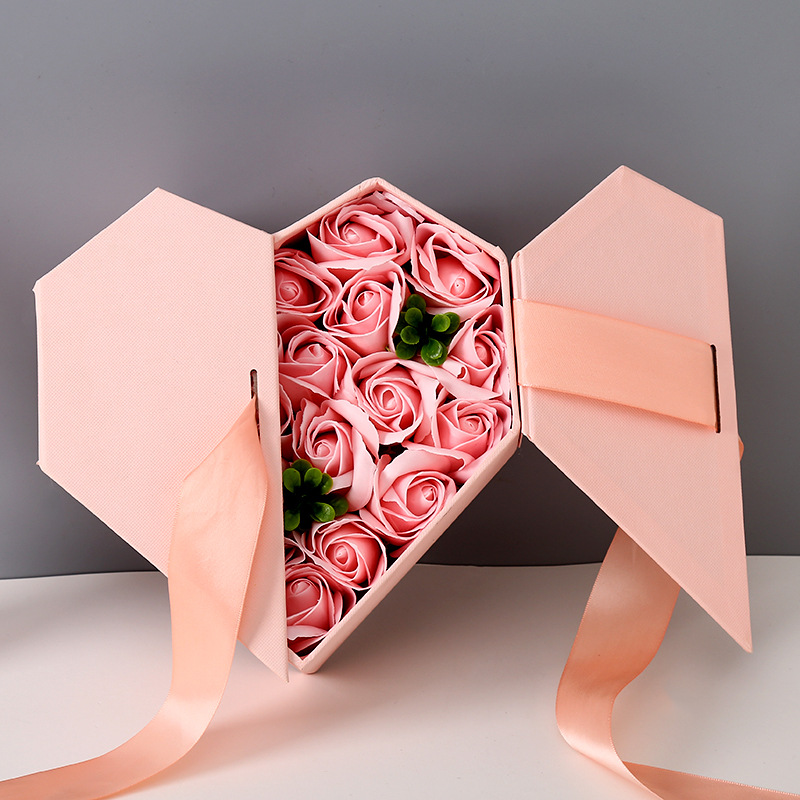 バレンタインデー両開きハート型ギフトボックス結婚式のお土産包装箱リボンリボン化粧品ギフトボックス