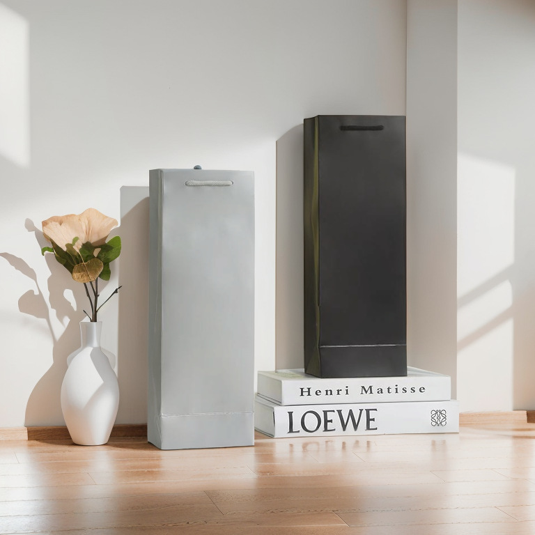 クリスマスワイン用ハンドバッグ、一輪の花用バッグ、ギフトバッグ、厚手の記念品用窓付き紙袋卸売