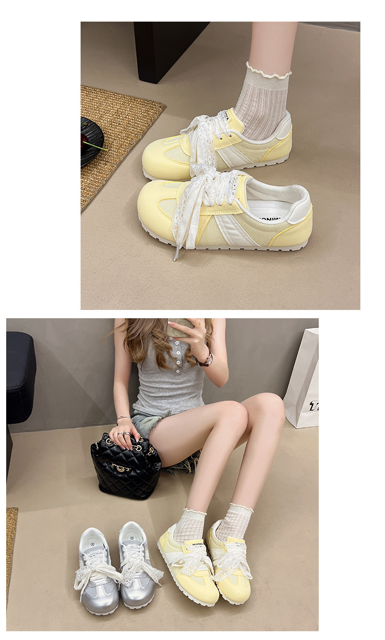 女性用スポーツシューズ 2025 新しい夏のレトロな多用途の道徳トレーニングシューズ平底通気性、快適、ファッショナブルでカジュアルなスニーカー