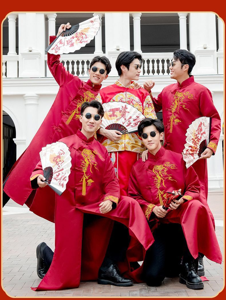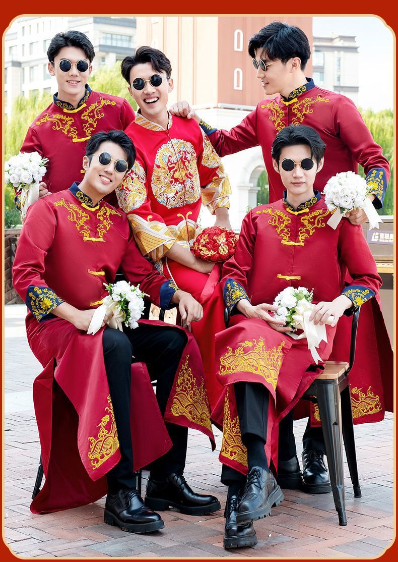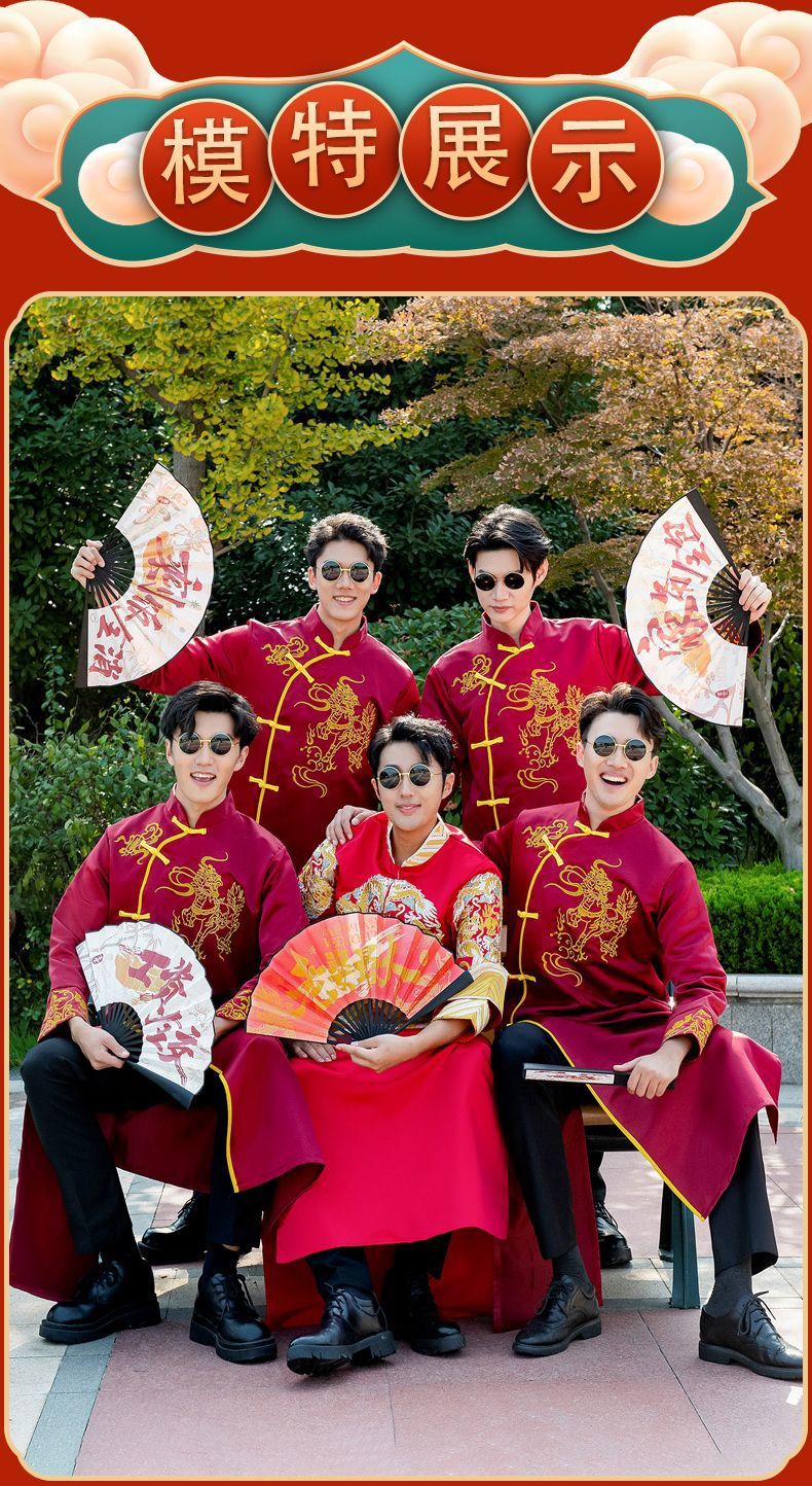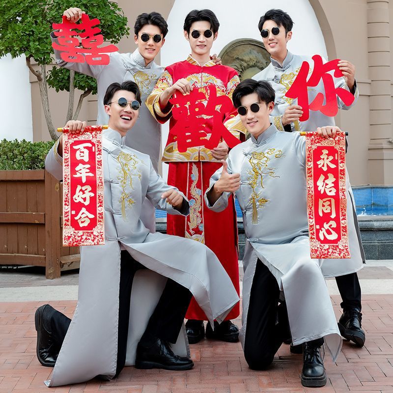 ベストマンスーツ、兄弟グループコスチューム、中国風結婚式、新郎送迎、唐装、ローブ、コート、面白い漢服男性