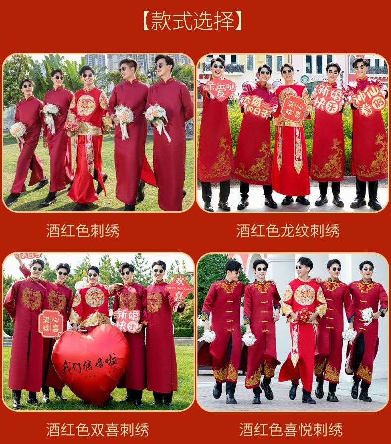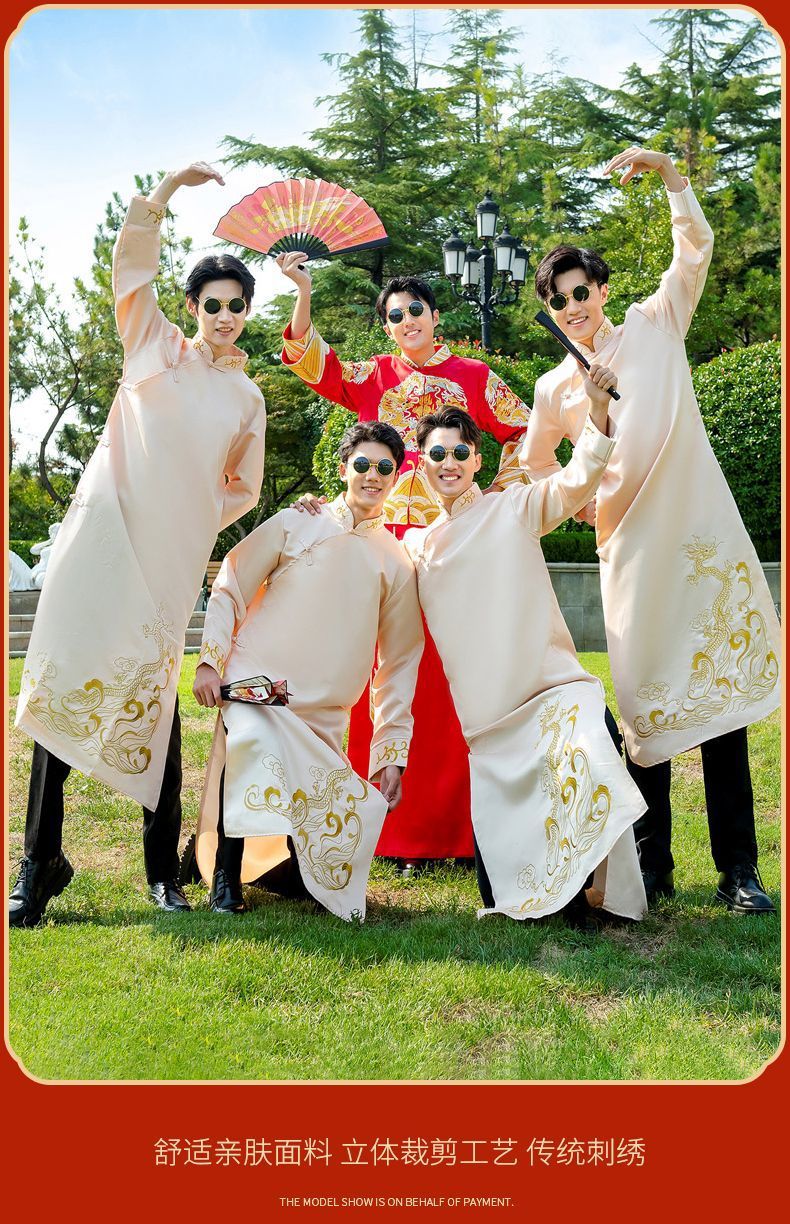 伴郎服兄弟团服装中式结婚礼服新郎唐装男长袍大褂中国风接亲马褂