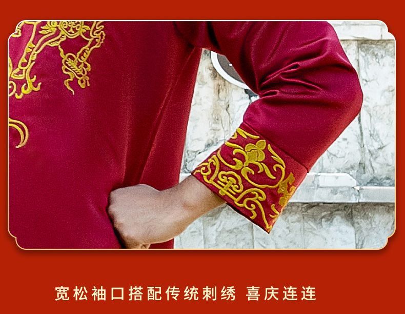 伴郎服中式结婚礼服兄弟团秋冬接亲服装男中国风长袍大褂唐装马褂