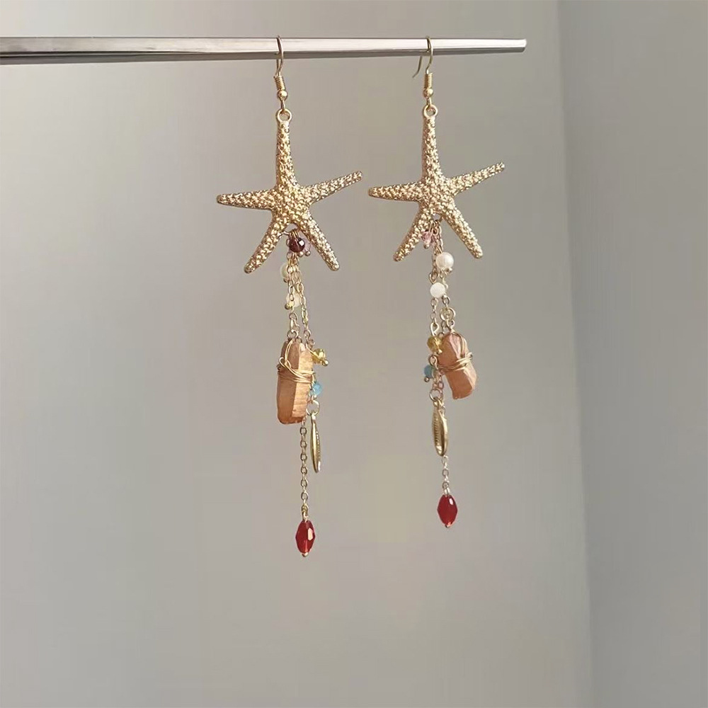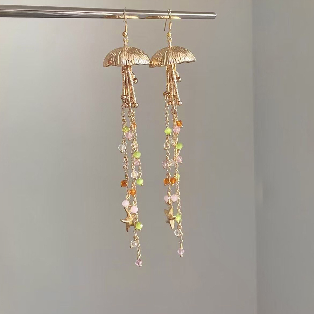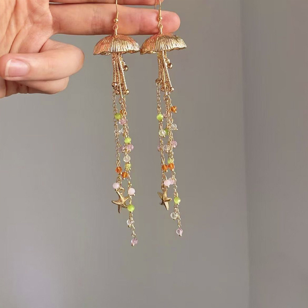 ヨーロッパとアメリカのクロスボーダージュエリーリゾートビーチヒトデクラゲ合金イヤリングファッショナブルなクリスタルタッセルイヤリング