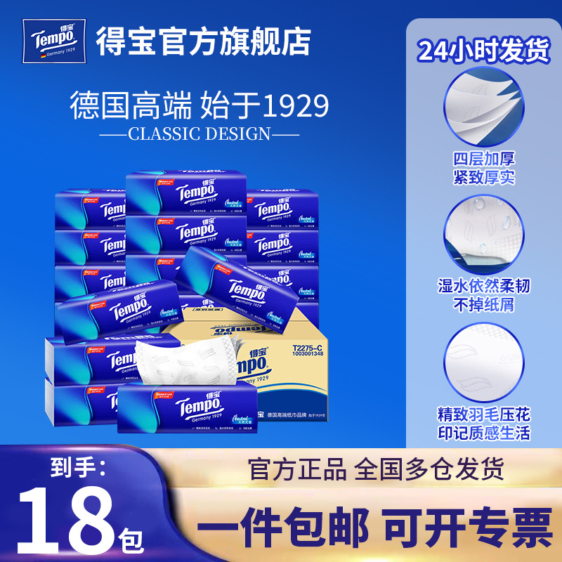 Tempo得宝抽纸大量批货甜心桃香味餐巾纸家用实惠装四层加厚纸巾