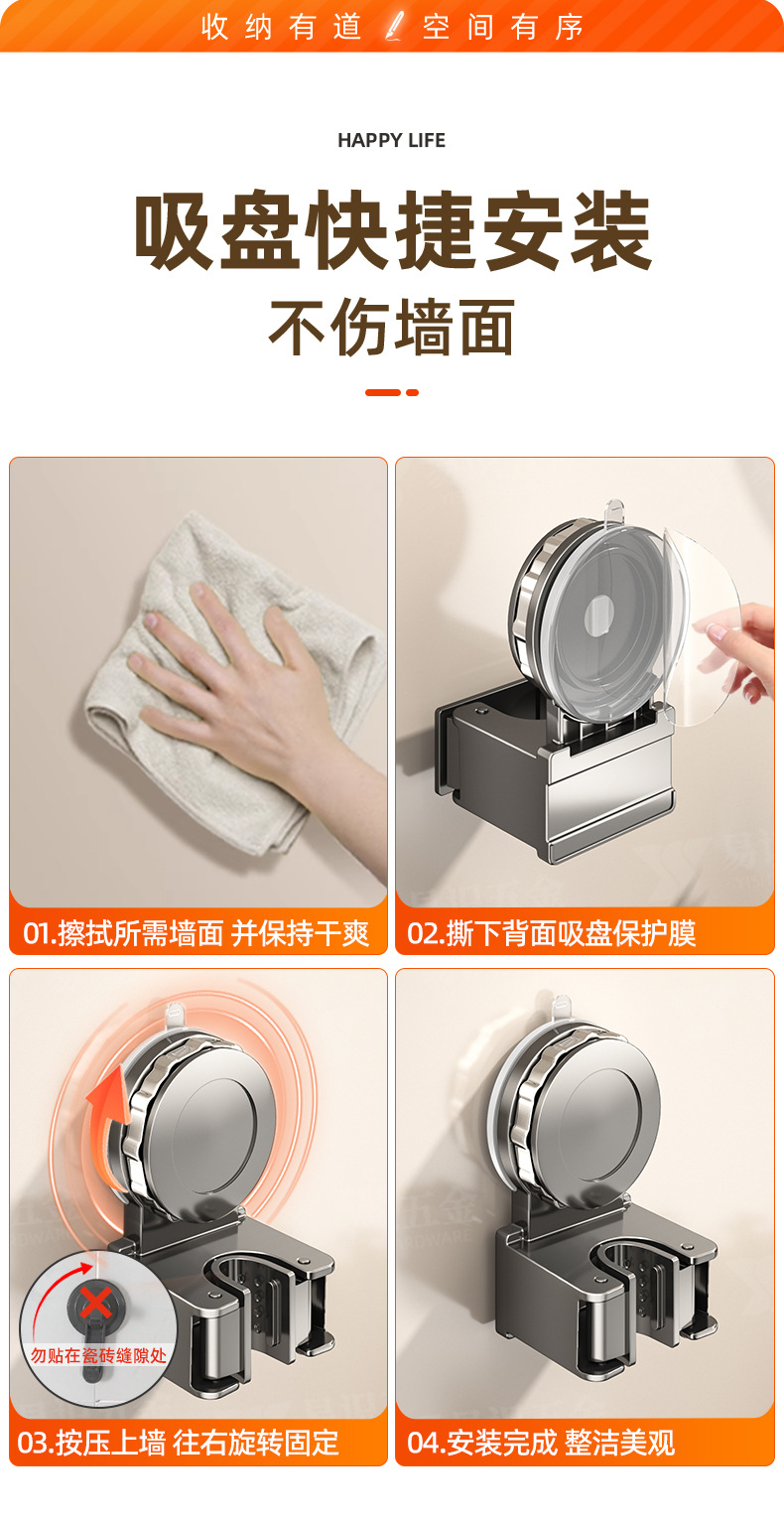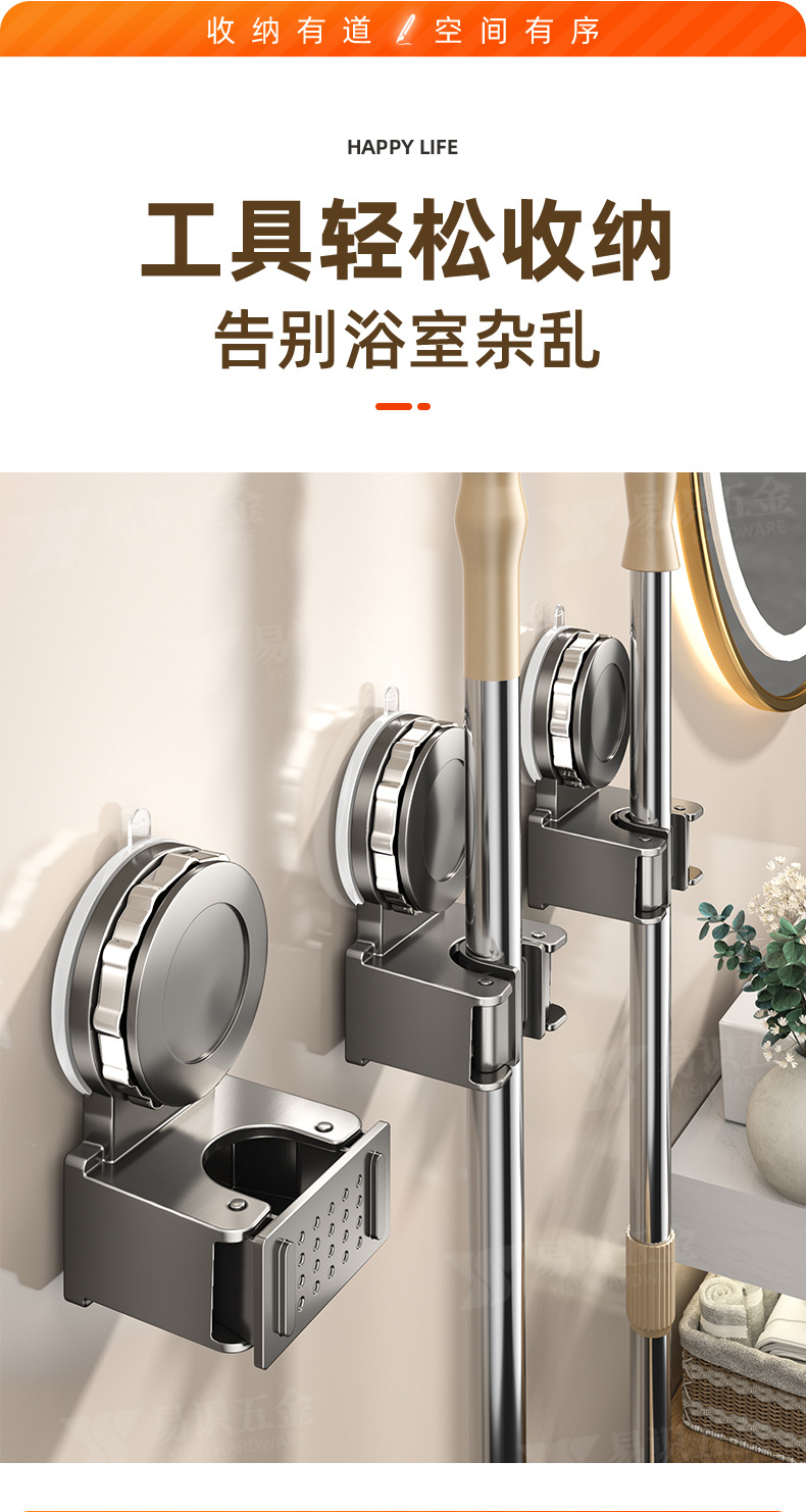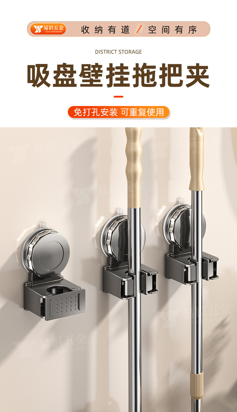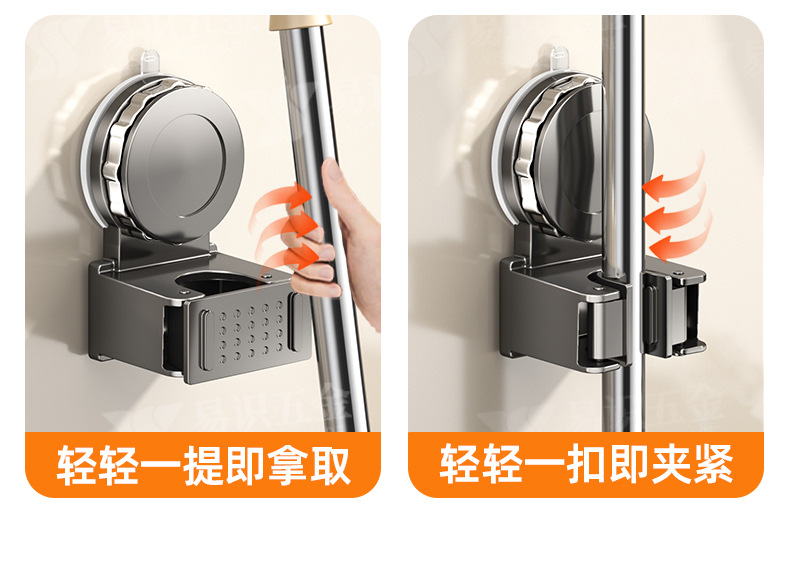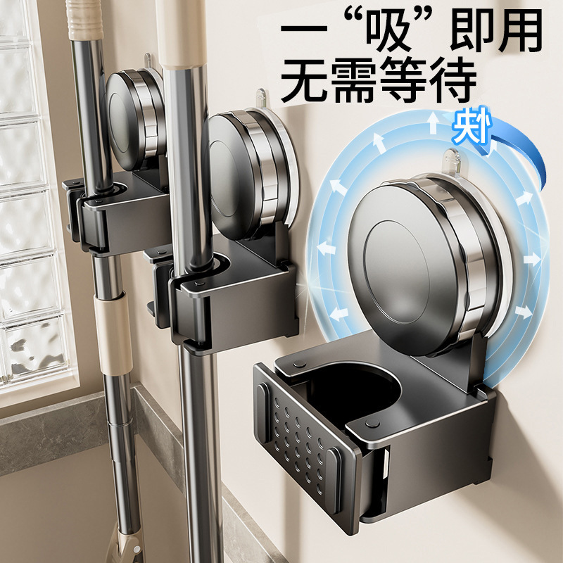 吸盤モップクリップ強力穴なしモップ壁掛けクリップ家庭用浴室壁収納神器モップ掃除機