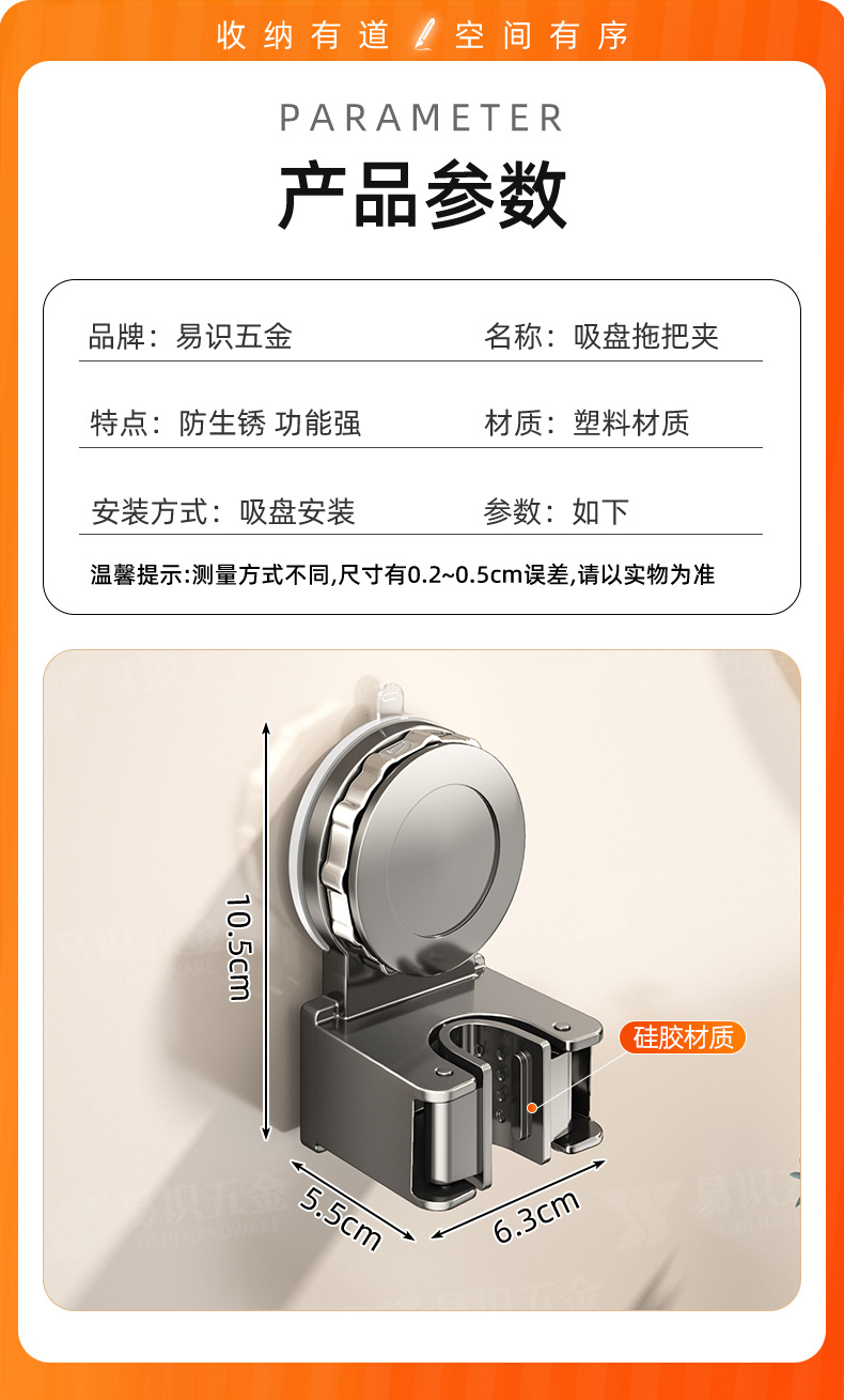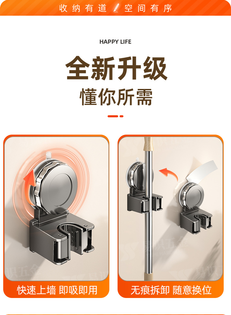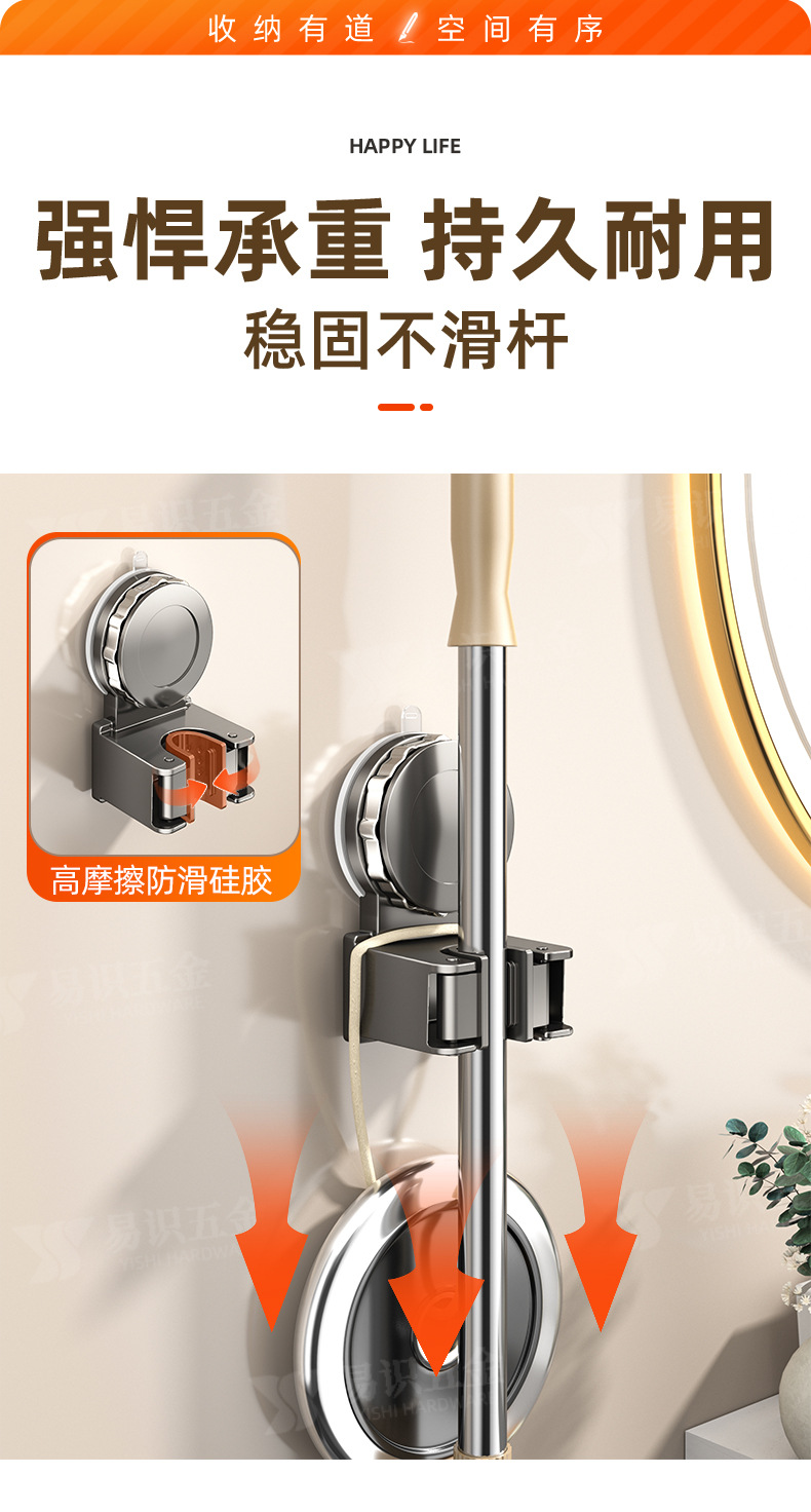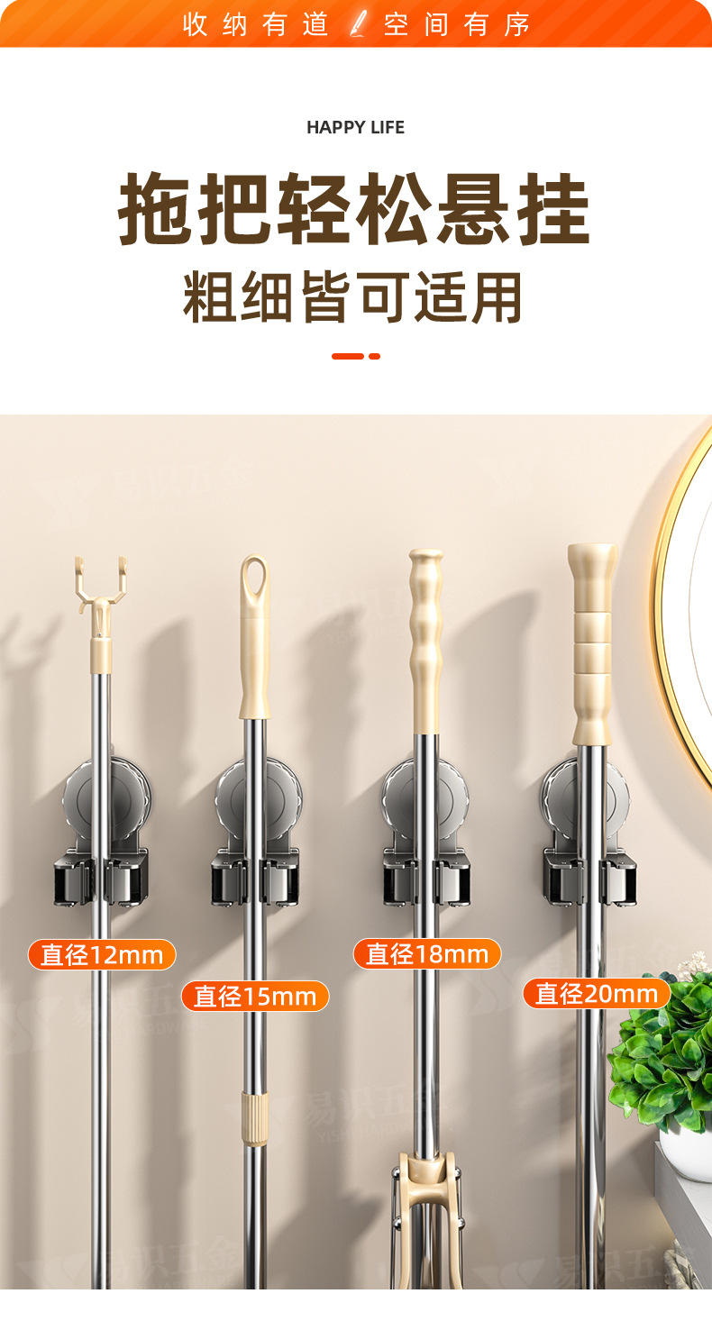 吸盘拖把壁挂夹卫生间免打孔拖把夹挂扫把拖布挂钩固定架收纳神器