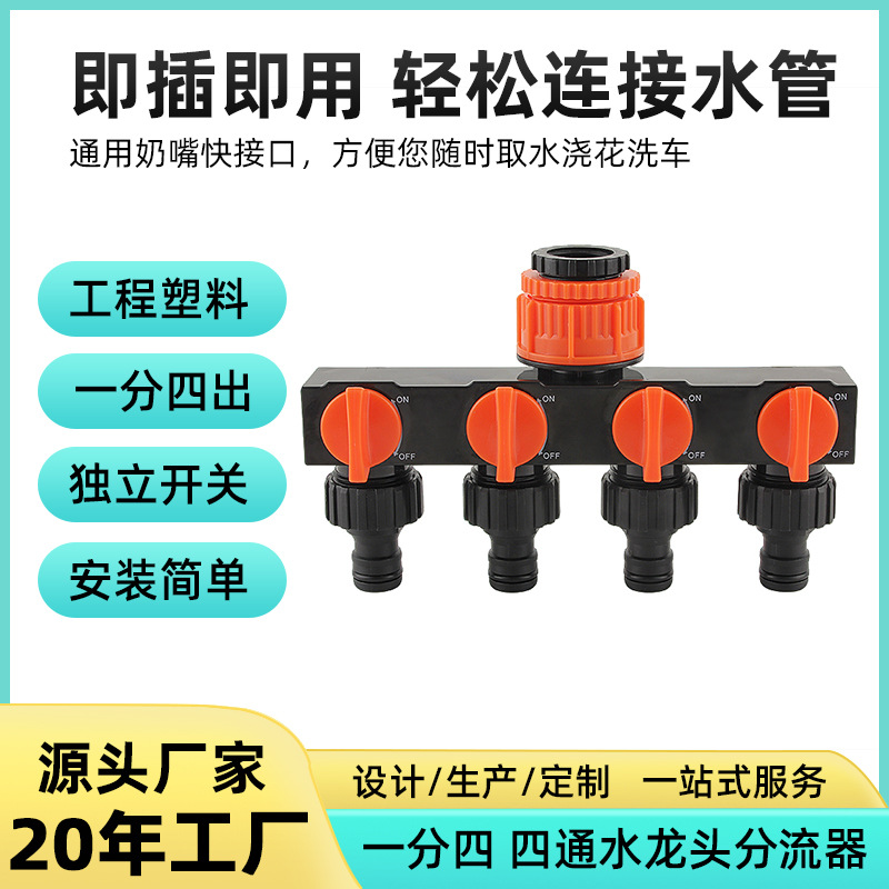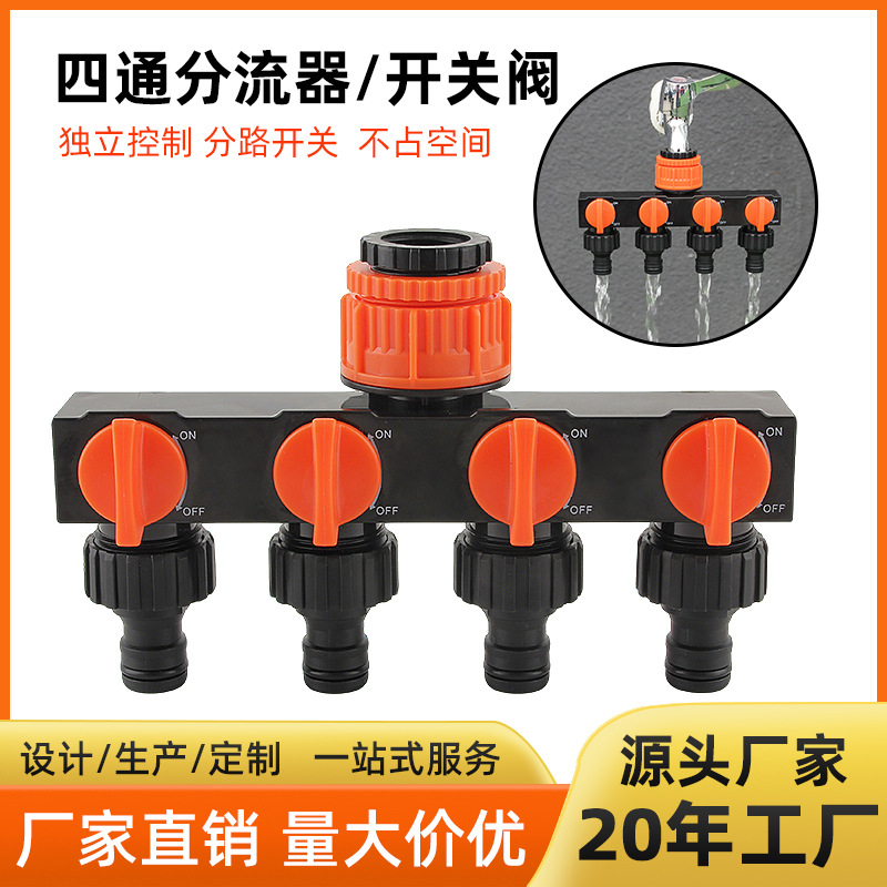 源头直供家用花园四通接头带开关阀门水龙头快接式一进四出分水器