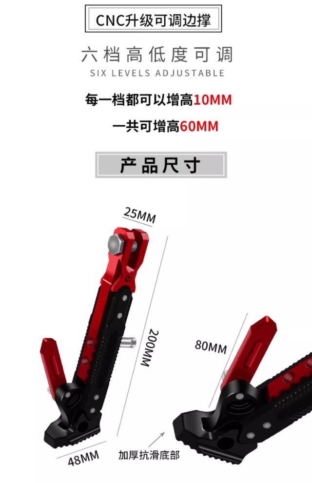 电动车单撑电瓶车可调节边撑侧支架改装侧脚架越野趴赛摩托车撑云