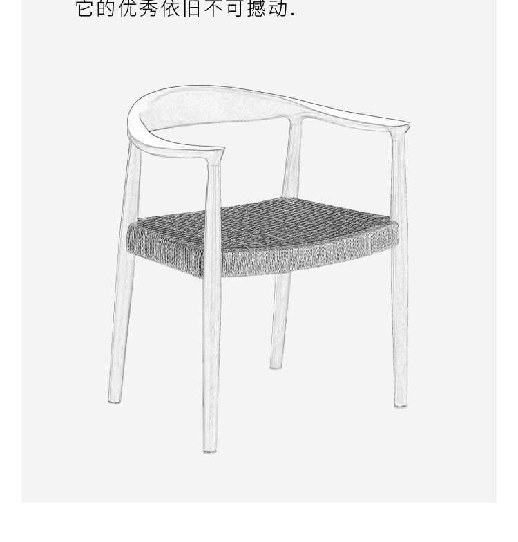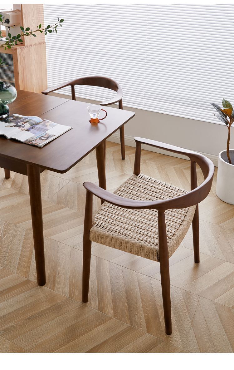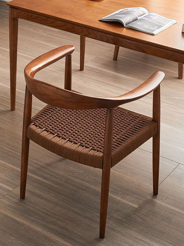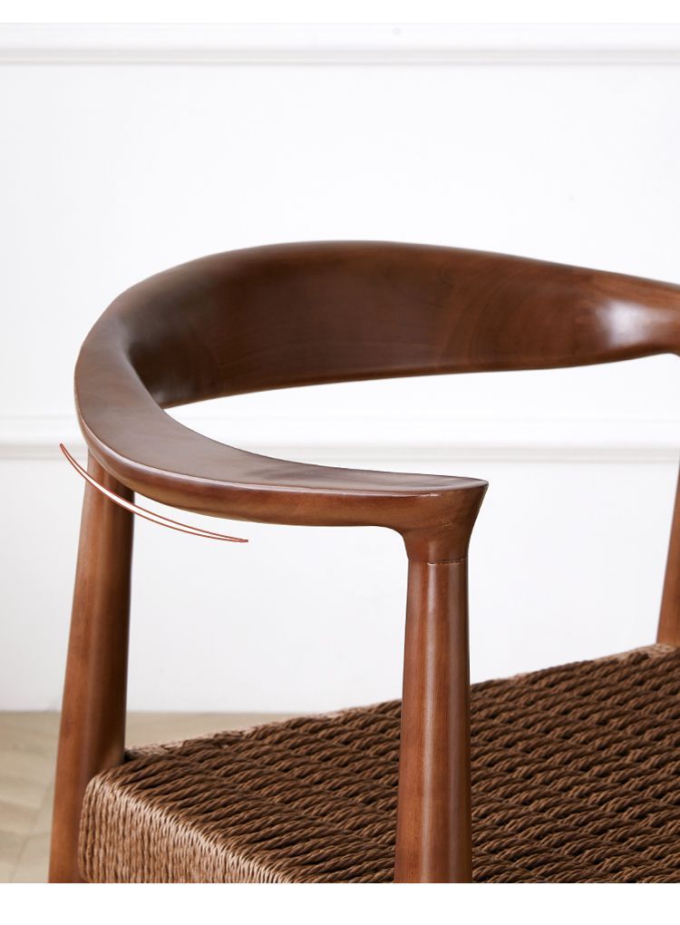 北欧風無垢材ミニマリストアームチェア、書斎・茶室・商談用チェア、北欧風牛革紙編みロープ、ケネディ大統領チェア