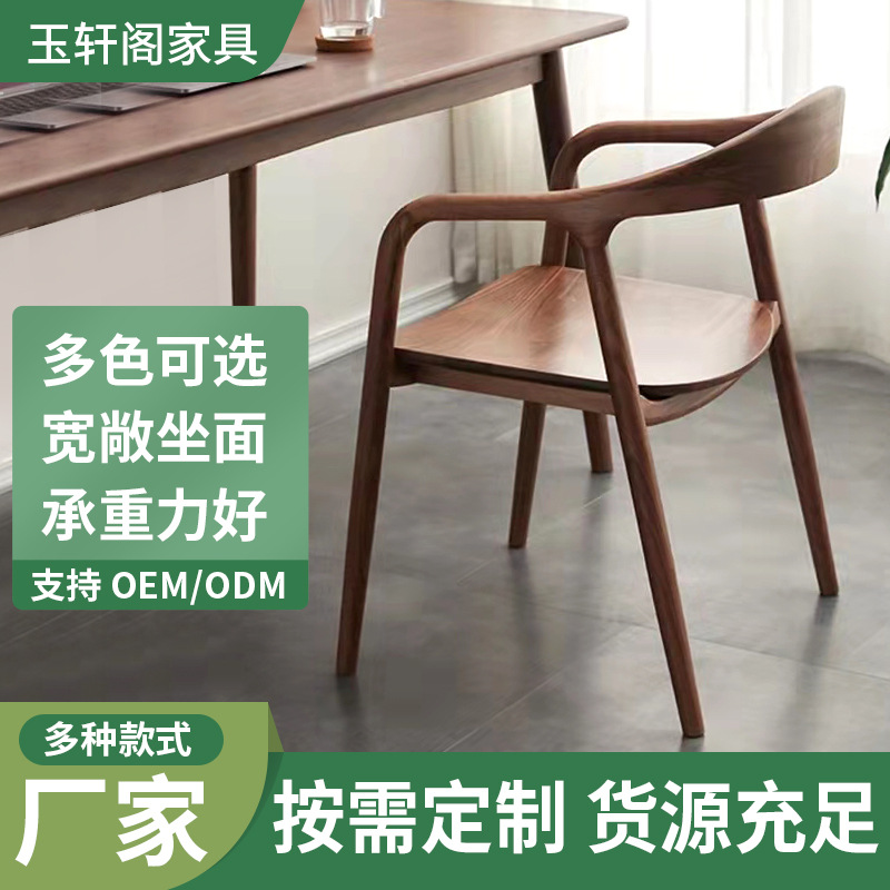 复古北欧设计师中式餐椅休闲扶手椅现代简约家用靠背书桌实木椅子
