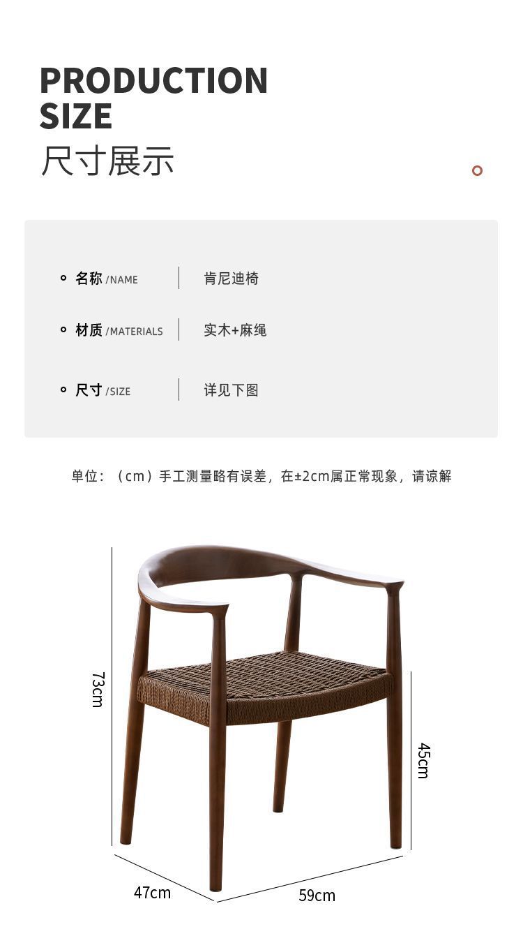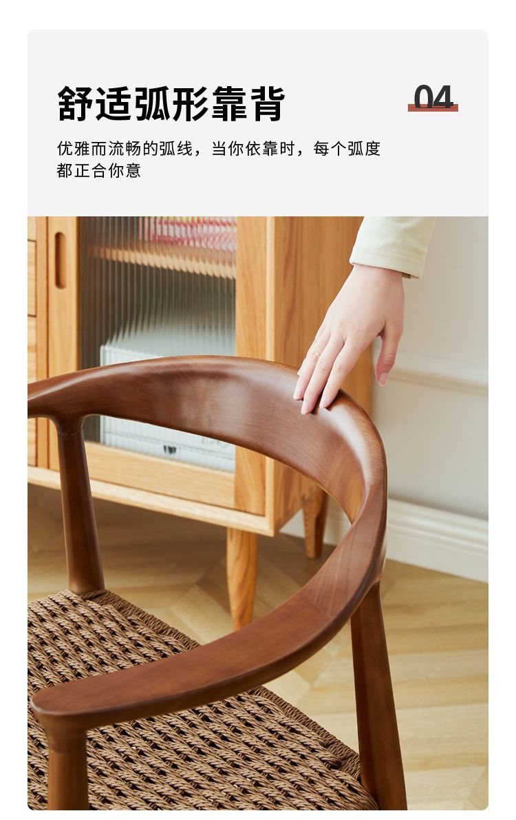 北欧シンプルな中世カジュアル無垢材ダイニングチェアケネディテーブルと椅子ホームカフェ背もたれ椅子クッションロープ編み