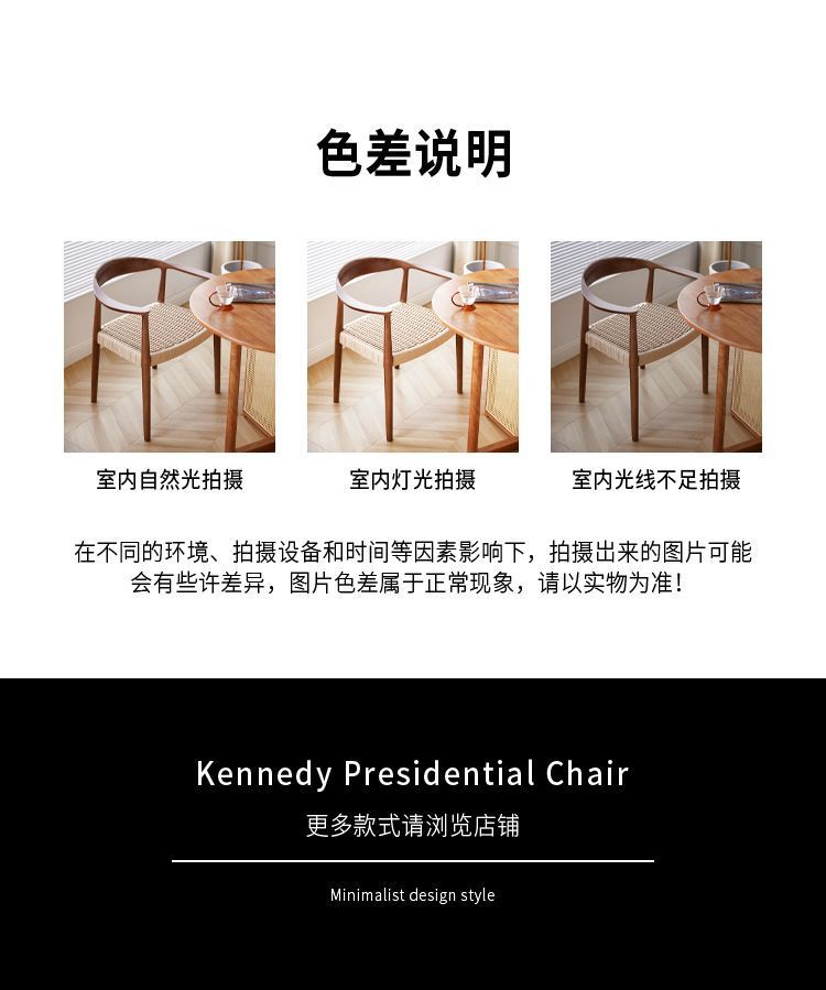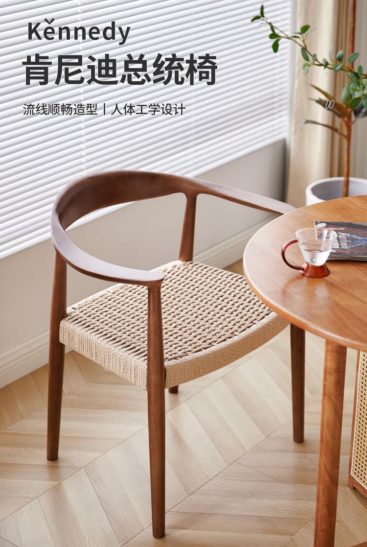 レトロ無垢材ケネディ大統領ダイニングチェアホーム籐北欧ホーン背もたれアームレストブラックウォールナットデスクティーチェア