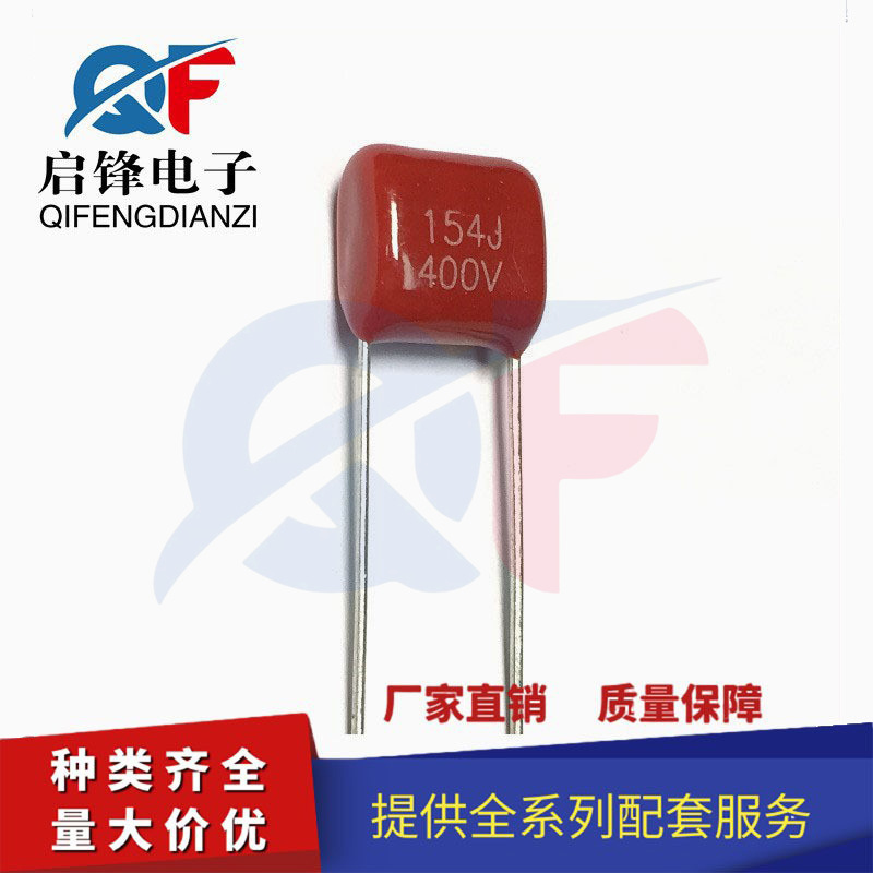 CBBコンデンサー400v 15 j 4 P = 10mmフットフィルムコンデンサー400v 15 j 0.15UF/150 fインライン