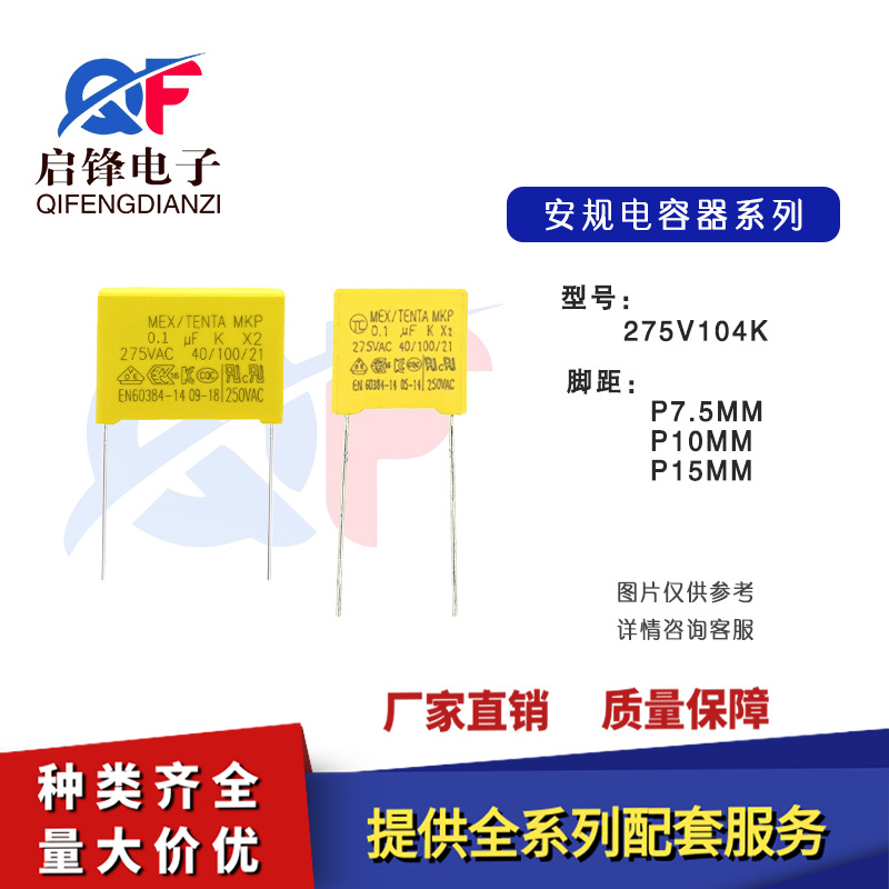 インラインX2安全コンデンサ275V104K 0.1UF 100nf275vac足距離P7.5/10/15mm