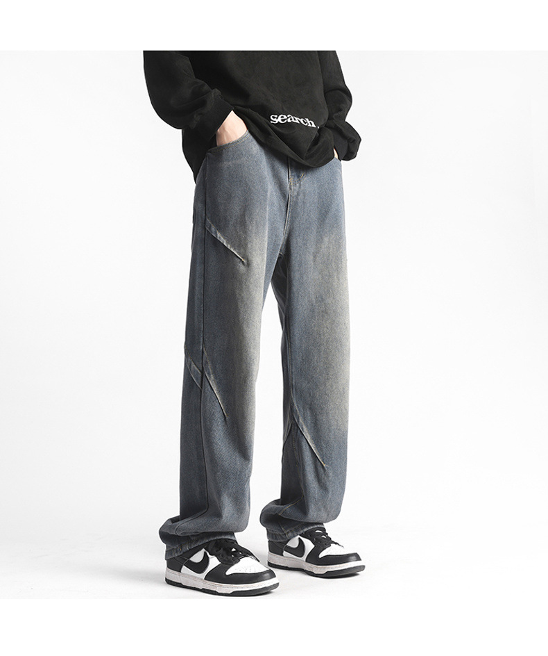 2024春の欧米風直筒束足ジーンズins工装長ズボンカジュアル大サイズ青年ファッション男性服