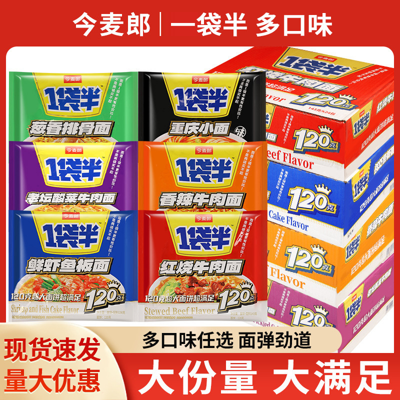 今麦郎一袋半方便面24袋整箱红烧牛肉面夜宵代餐速食泡面包邮批发