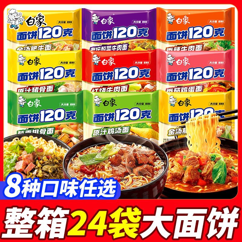 白象方便面大面饼120克整箱批发红烧香辣原汁鸡汤泡面多口味速食