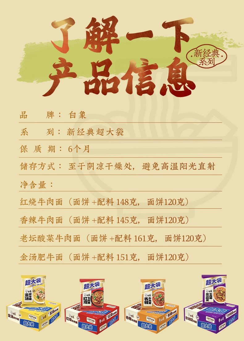 白象インスタントラーメン超大袋香辛赤焼牛肉麺袋入りスープインスタントラーメン