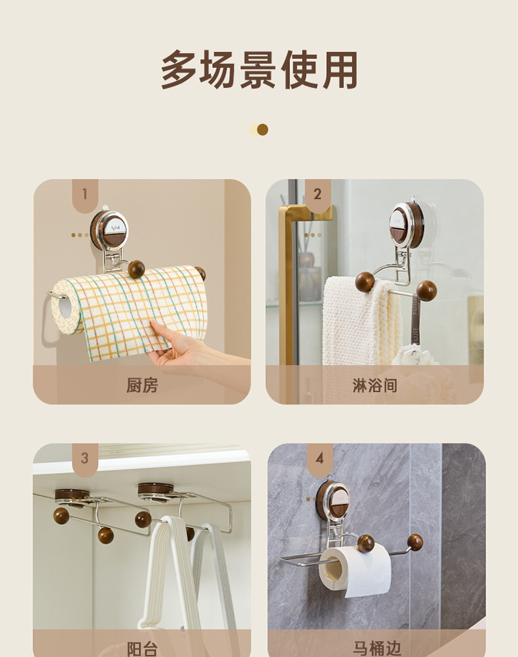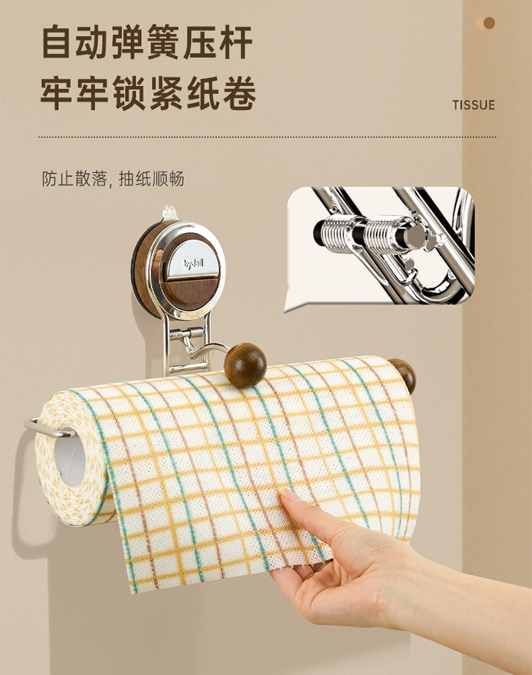厨房吸盘原木抹布卷纸置物架免打孔壁挂橱柜家用可拆卸纸巾收纳架