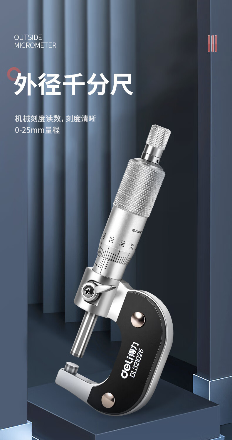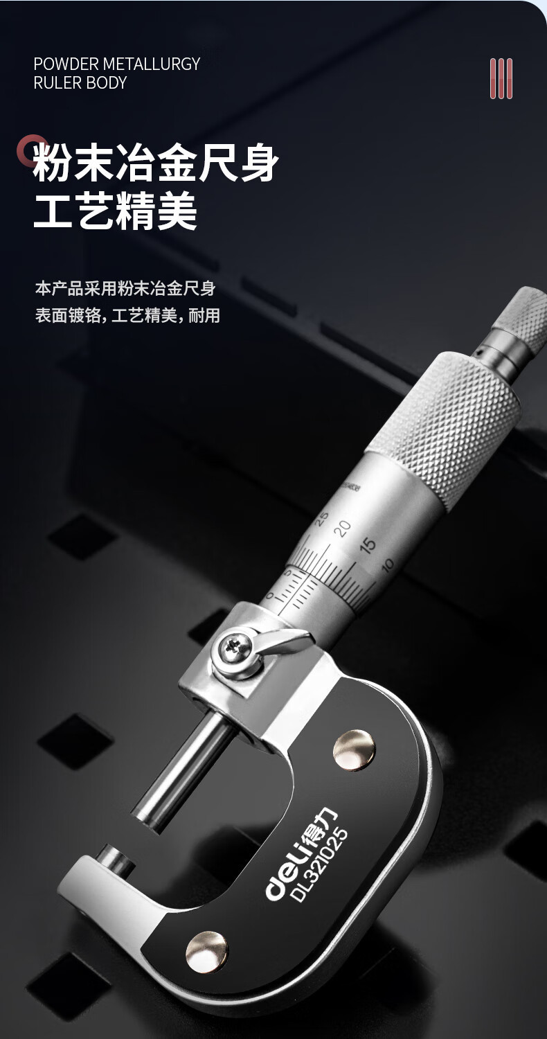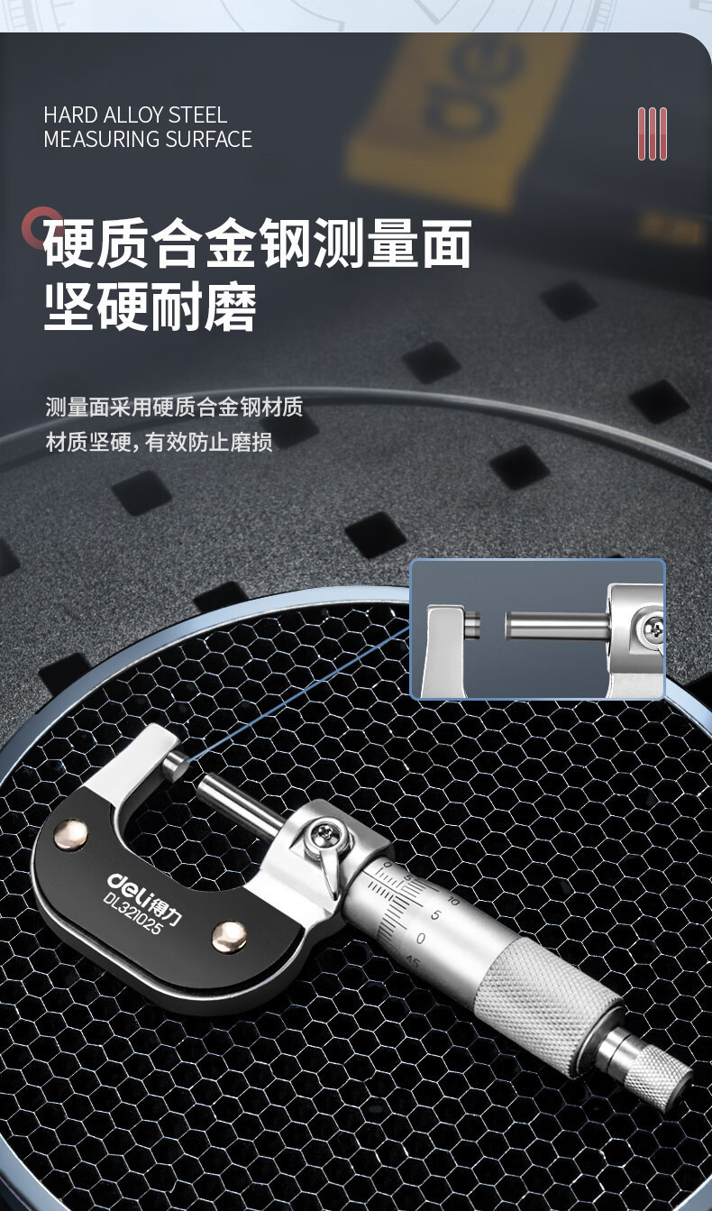 デリ外径マイクロメーターデジタル表示スパイラルマイクロメーター高精度機械式厚さ計 0-25 ミリメートル