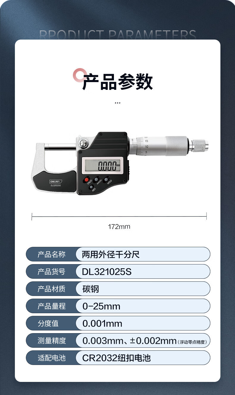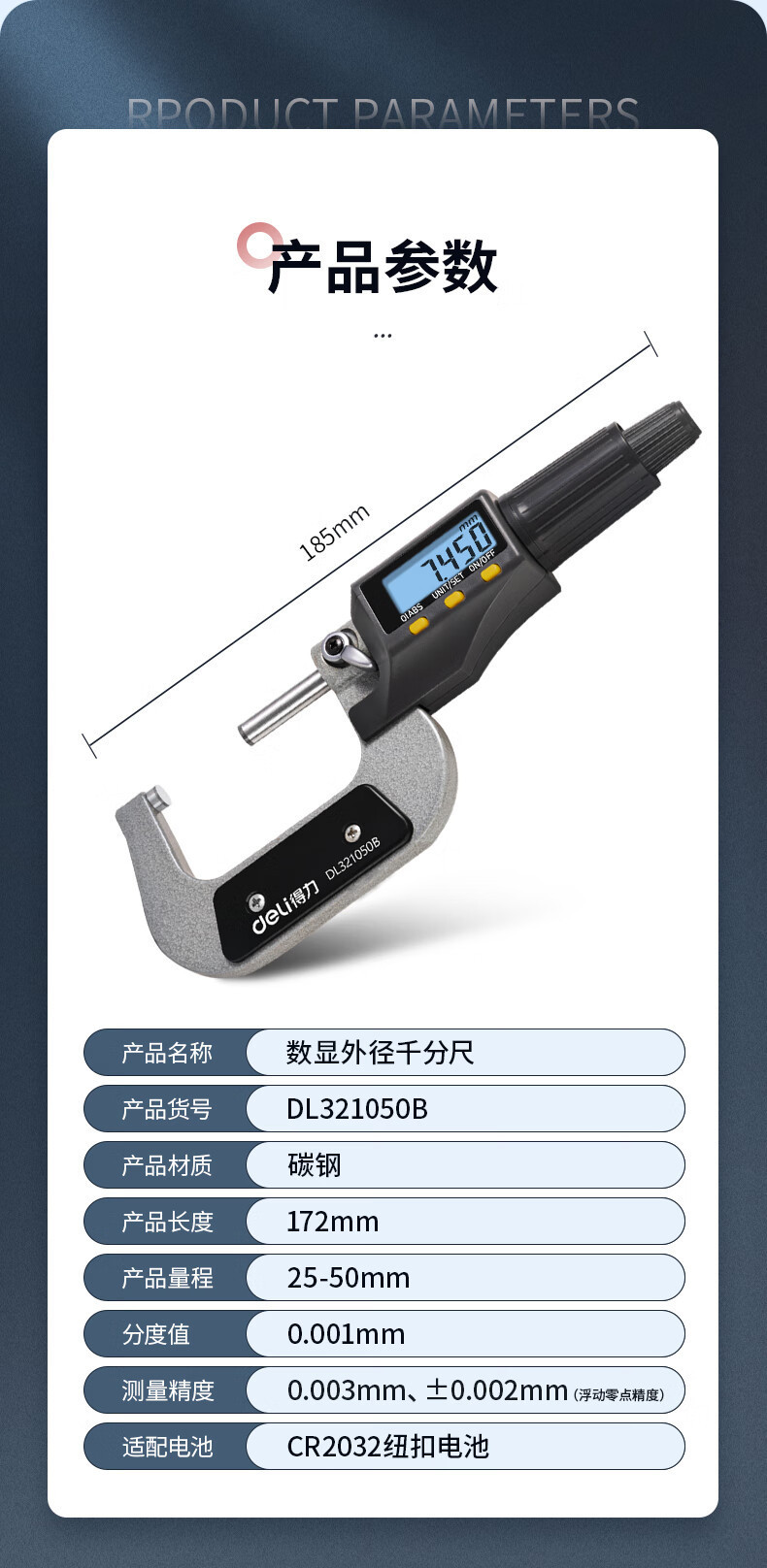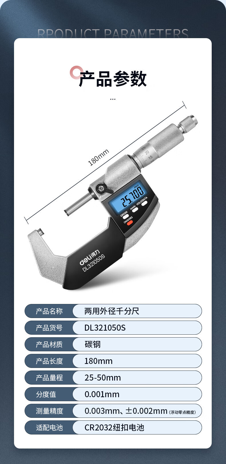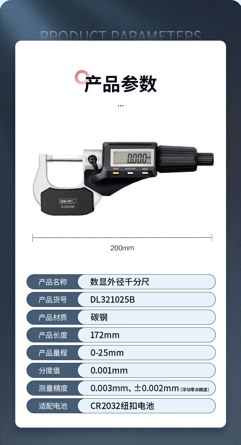 モデル DL321025 外径マイクロメーター 0-25mm,DL321025B デジタル表示外径マイクロメーター 0-25mm,DL321025S デジタル表示外径マイクロメーター 0-25mm,DL321050 外径マイクロメーター 25-50mm,DL321050B デジタル表示外径マイクロメーター 25-50mm,DL321050S デジタル表示外径マイクロメーター 25-50mm