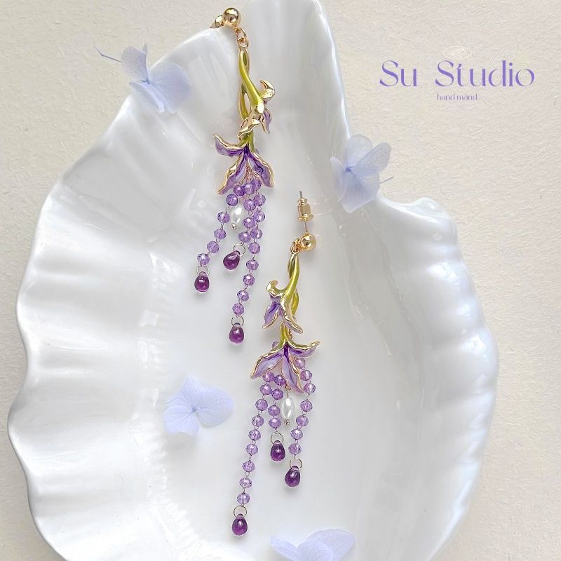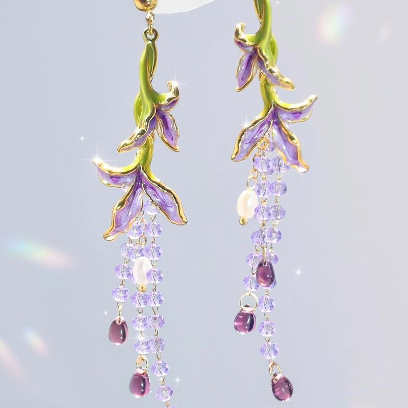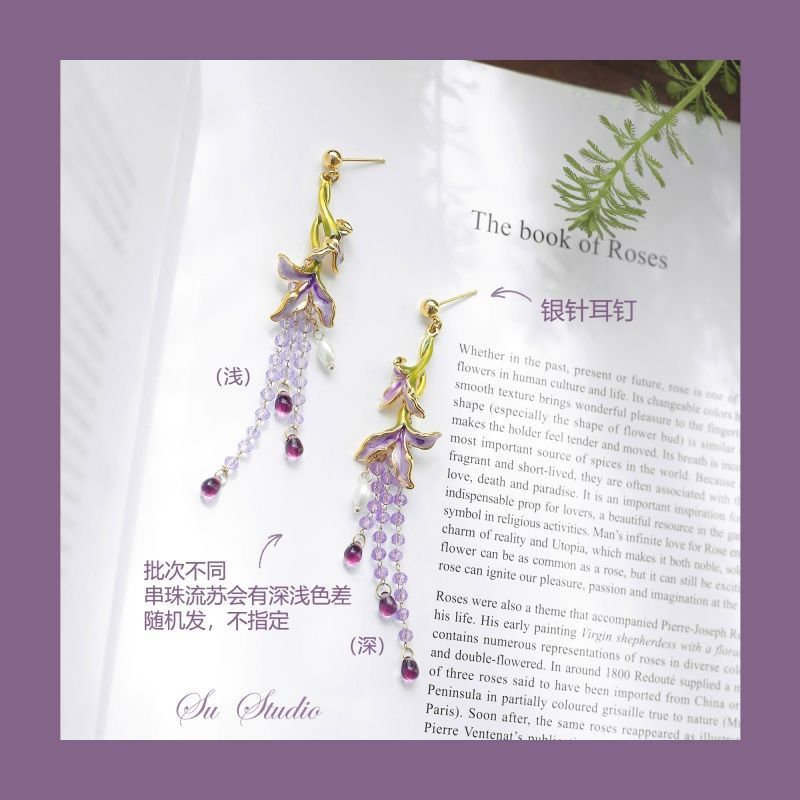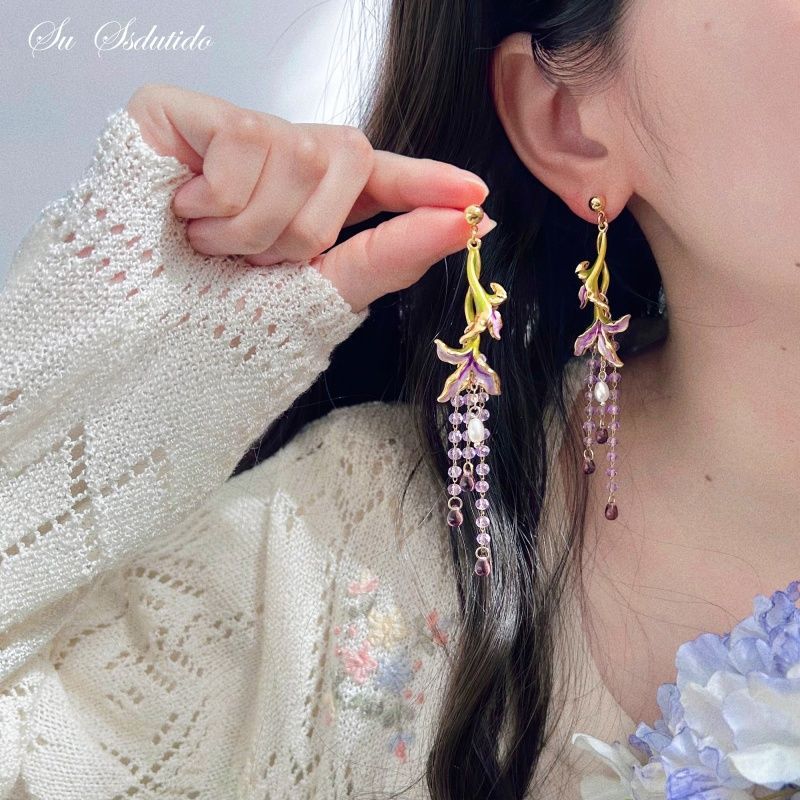 SU Sujia アイリス クリア デュー パープル ペイント フォレスト スーパー フェアリー スリミング ロング タッセル シルバー ニードル イヤリング ノンホールピアス