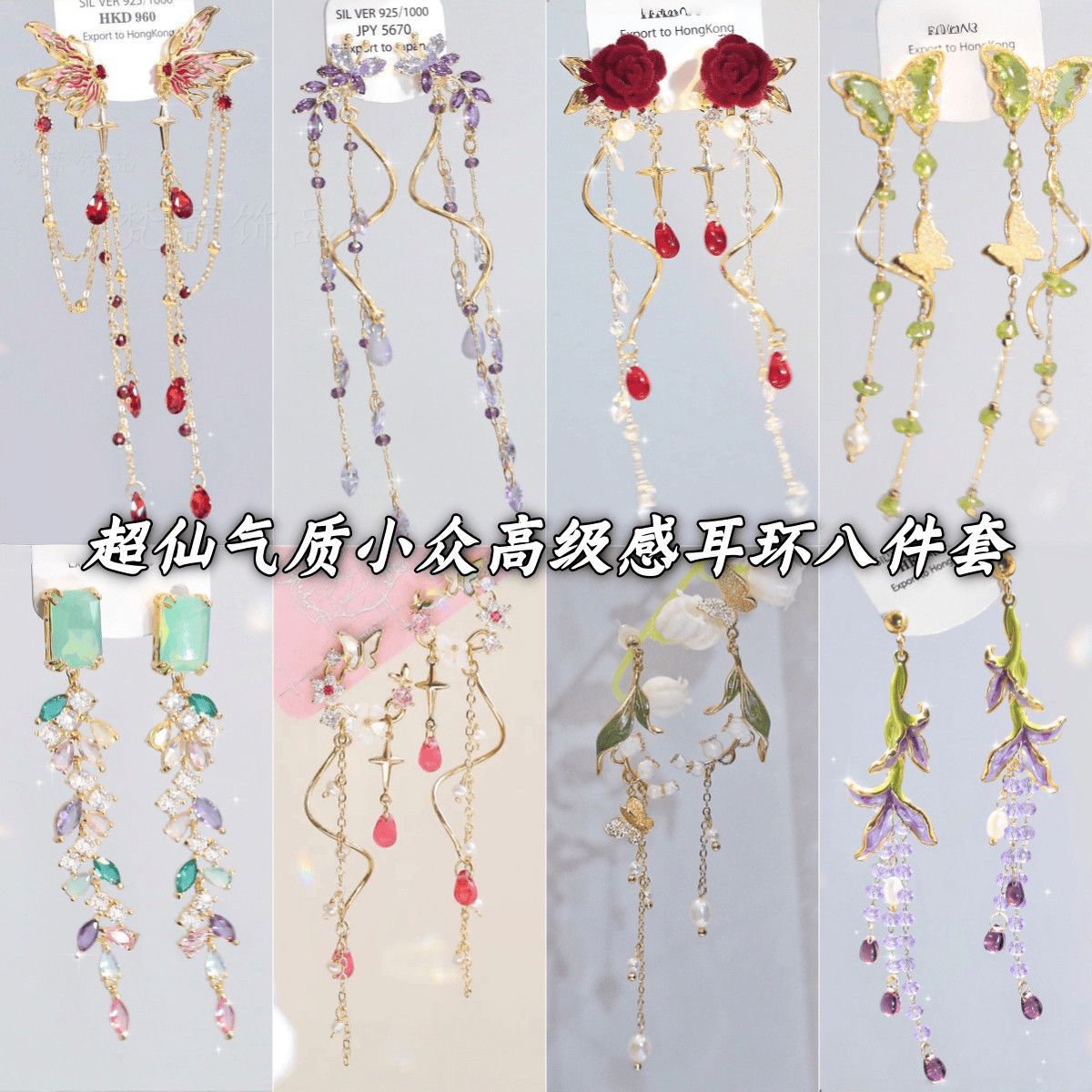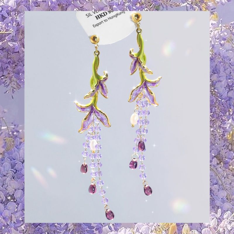 長いフリンジイヤリング合集 ~ 蝶落紫藤花春紫ジルコン森系超仙顕痩せ新耳釘
